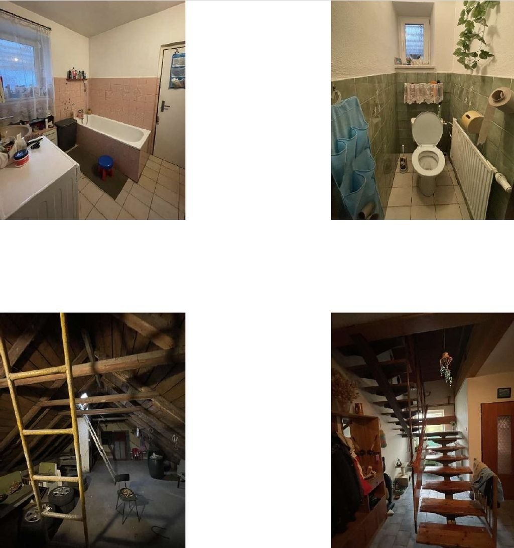 Jedná se o samostatně stojící rodinný dům s 1.NP, podkrovím a půdou. Dům je částečně podsklepený. Dispozice rodinného domu je 5+2. V domě se nachází: 2x sklep, v 1.NP: 2x předsíň, 2x chodba, obývací pokoj, ložnice, WC, koupelna, kuchyně, 2x spíž, kotelna a schodiště. V podkroví: chodba, kuchyně, dětský pokoj, obývací pokoj. Dále je součástí dílna a sklad. Okna jsou plastová s trojsklem. Kuchyňské vybavení tvoří elektrický sporák a kuchyňská linka bez vestavěných spotřebičů. V koupelně se nachází klasická vana, umyvadlo a na toaletě se nachází klasická toaleta. Voda je odebírána ze studny. Objekt je napojen na veřejnou kanalizaci. Vytápění zajišťuje elektrokotel a kotel na tuhá paliva. Pozemek je oplocený. Trvalé porosty - ovocné dřeviny, okrasné dřeviny. Na pozemku se dále nacházejí vedlejší stavby - pergola (2014) a zděný přístřešek (2000) sloužící k parkování auta.