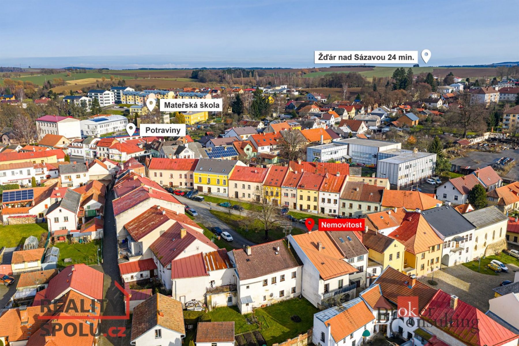 V klidné části užšího centra Polné, na Karlově náměstí, nabízíme k prodeji výjimečný historický dům s atmosférou a historií přesahující 400 let. Nemovitost, která v sobě kombinuje charakter původní stavby, již provedenou citlivou rekonstrukci a jasný potenciál pro vznik nadstandardního městského bydlení. V posledních letech proběhla rekonstrukce fasády, výměna oken a kompletní rekonstrukce obytné části ve 2. NP, včetně povrchů a rozvodů. Okolo celého 2. nadzemního podlaží se nachází nově zrekonstruovaná, prostorná terasa, která výrazně rozšiřuje obytný prostor a nabízí klidné venkovní posezení s dostatkem soukromí. Dispozice domu je aktuálně v podstatě 3+1 (4KK). V 1. NP se nachází dva samostatné pokoje, z nichž jeden je v současnosti využíván jako kuchyň, dále samostatná koupelna a WC. Toto podlaží je ve velmi dobrém technickém stavu a nabízí ideální prostor k modernizaci dle vlastních představ. Ve 2. NP jsou dva samostatné pokoje, využívané jako ložnice a obývací pokoj, dále samostatné WC a připravený prostor pro vybudování nové koupelny nebo prádelny, což umožňuje plnohodnotné a komfortní bydlení bez kompromisů. Dům je ihned obyvatelný. Na rekonstrukci střechy je vydáno platné stavební povolení, což výrazně zjednodušuje a urychluje další rozvoj nemovitosti. Po dokončení rekonstrukce 1. NP a střechy zde vznikne velmi kvalitní a nadčasové bydlení v perfektní lokalitě, s rozumnými provozními náklady odpovídajícími charakteru domu. Součástí nemovitosti je pozemek před domem s možností parkování a samostatná garáž, což je v historickém centru města výraznou přidanou hodnotou. Tato nemovitost je ideální volbou pro klienty, kteří hledají klid, soukromí, jedinečnou atmosféru a dlouhodobou hodnotu, s kompletní občanskou vybaveností v docházkové vzdálenosti a výbornou dostupností do Jihlavy.