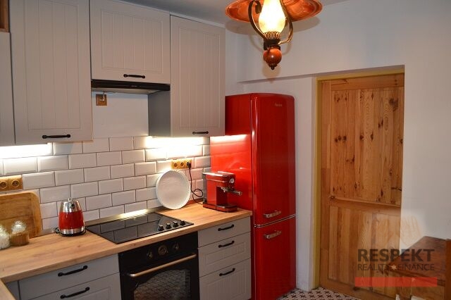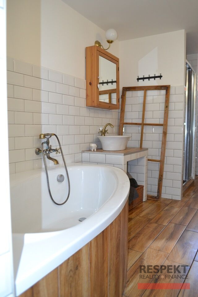 Rodinný dům po stylové kompletní rekonstrukci. Exkluzivně. Dovoluji si Vám nabídnout ke koupi cihlový rodinný dům o dispozici 3+1 s celkovou užitnou plochou 124 m2 (kromě podlahové plochy domu navíc pergola s udírnou a grilem, sklep, dílna), s potenciálem dalších pokojů na půdě, přístupné z prostorné chodby. Rodinný dům je vkusně zrekonstruovaný kvalitními materiály v rustikálním stylu (dlažby v dekoru dřeva na podlaze, cihlový obklad v obývacím pokoji, krbová kamna, dřevěné interiérové dveře, posuvné dveře v kuchyni, rustikální detaily aj.), umístěný na konci obce Pchery, část Theodor. Dům byl kompletně rekonstruován: střecha (střešní krytina, okapy; trámy jsou v dobrém technickém stavu umožňující půdní vestavbu), okna a vstupní dveře, rozvody elektřiny, vody a odpadu v obytných částech domu, omítky a stropy v obytné části, interiérové dveře, podlahy, vytápění (plynový kotel, deskové radiátory, měděné rozvody, krbová kamna, komínové těleso), kuchyňská linka (sklokeramická deska, el. trouba, digestoř, myčka), koupelna (vana, sprchový kout, plynový kotel, zásobník na teplou vodu, místo pro pračku a sušičku). Dům je napojený na rozvody elektřiny, plynu, vodovodní řadu a kanalizace. Bonusem pro Vás, kupujícího, je prostorný půdní prostor, který lze v případě potřeby využít k vytvoření další obytné plochy. V obci byla provedena kompletní výměna vodovodní a kanalizační sítě včetně nové silnice. Rovinatá zahrada obdélníkového tvaru s bazénem je ukryta před zraky sousedů cihlovou zdí, porostlou popínavými dřevinami. Na dvoře je k dispozici pergola s udírnou a grilem, dílna a parkovací stání (40m2). Průkaz energetické náročnosti zatím není vyhotoven, musíme uvést "G". Obec Pchery, část Theodor, je preferována zejména pro klidné prostředí s velmi dobrou dopravní dostupností (Kladno 5 minut jízdy; D7 - exit 9, vzdálen 8 minut jízdy, okraj Prahy pak dalších 7 minut jízdy autem; autobusová zastávka (nádraží Veleslavín, Kladno, Slaný), 2 minuty chůze. Občanská vybavenost je umístěna v obci Pchery (1 km): ZŠ, MŠ, ordinace praktického a dětského lékaře, lékárna, pošta, nákupní možnosti. V případě financování kupní ceny z výnosu prodeje svojí nemovitosti, např. bytu, Vám garantujeme rezervaci RD do doby prodeje Vašeho bytu. O prodej Vašeho bytu se samozřejmě postaráme, takže se přestěhujete přímo do rodinného domu. Financování koupě domu hypotečním úvěrem je možné, výhodnou hypotéku v případě zájmu zařídíme. Hledáte-li stylový rodinný dům se zahradou a dalším potenciálem rozšíření, přijďte na prohlídku.
