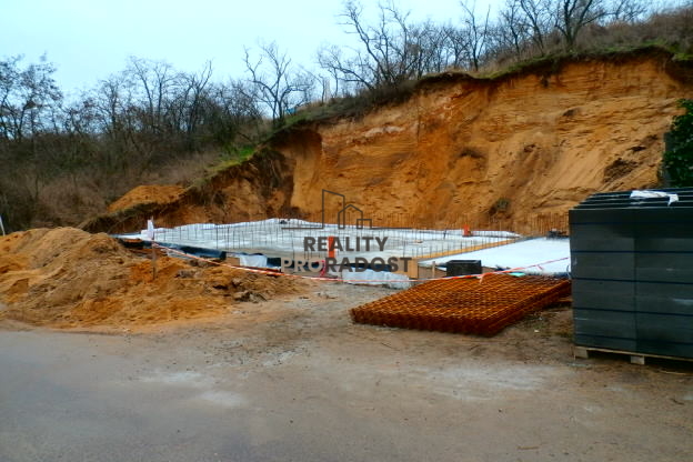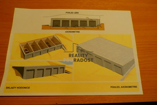 Nabízíme k prodeji stavební pozemek 344m2 s rozestavěnou stavbou v klidné lokalitě v Hodonicích s jižní orientací s přípravou na stavbu komerčních prostor např.sklady, průmyslová a řemeslná výroba, kanceláře, s vyřízeným stavebním povolením. Dle ÚP možnost bydlení pro správce či majitele objektu. V současné době je odtěžen původní svah, vylitá bytelná základová deska s nadimenzovanou armaturou, opěrná zeď. V ceně je projekt na 5 skladů (garáží) 3,1x8m2 s možností změny stavby před dokončením (1.patro-bydlení cca.130m2, sklep ve svahu aj.), vrata výška 2,65m (vhodné na dodávky,karavany). El.přípojka 3x25A v procesu EGD. Voda a plyn před pozemkem. Pro více info volejte makléři.