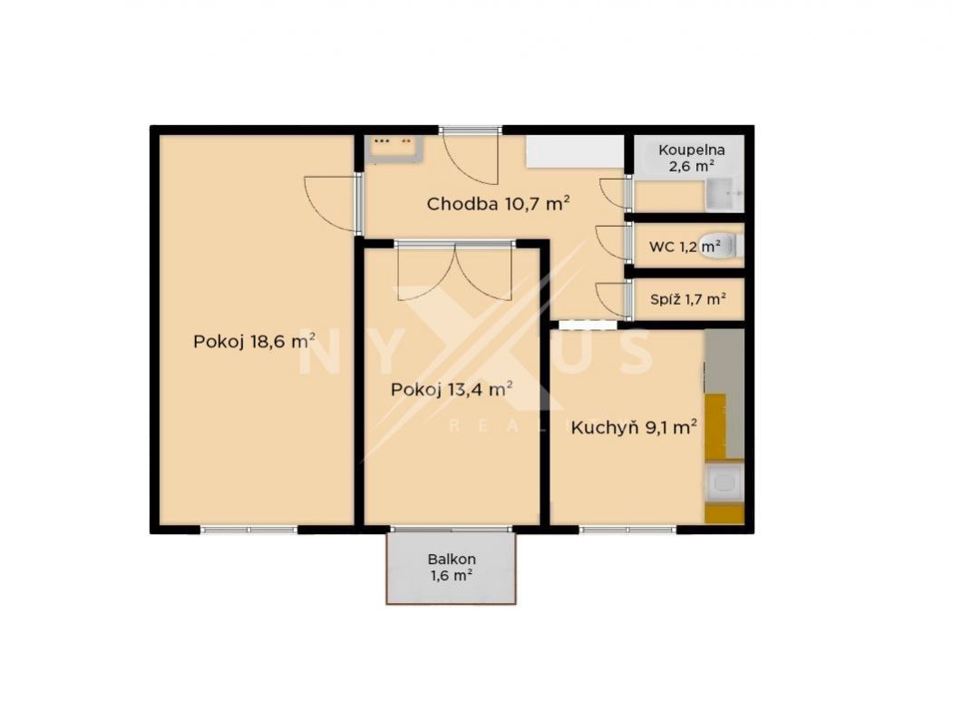 Prodej bytu 2+1 - 57 m + balkon 2 m, Černokostelecká, Praha 10 - Strašnice