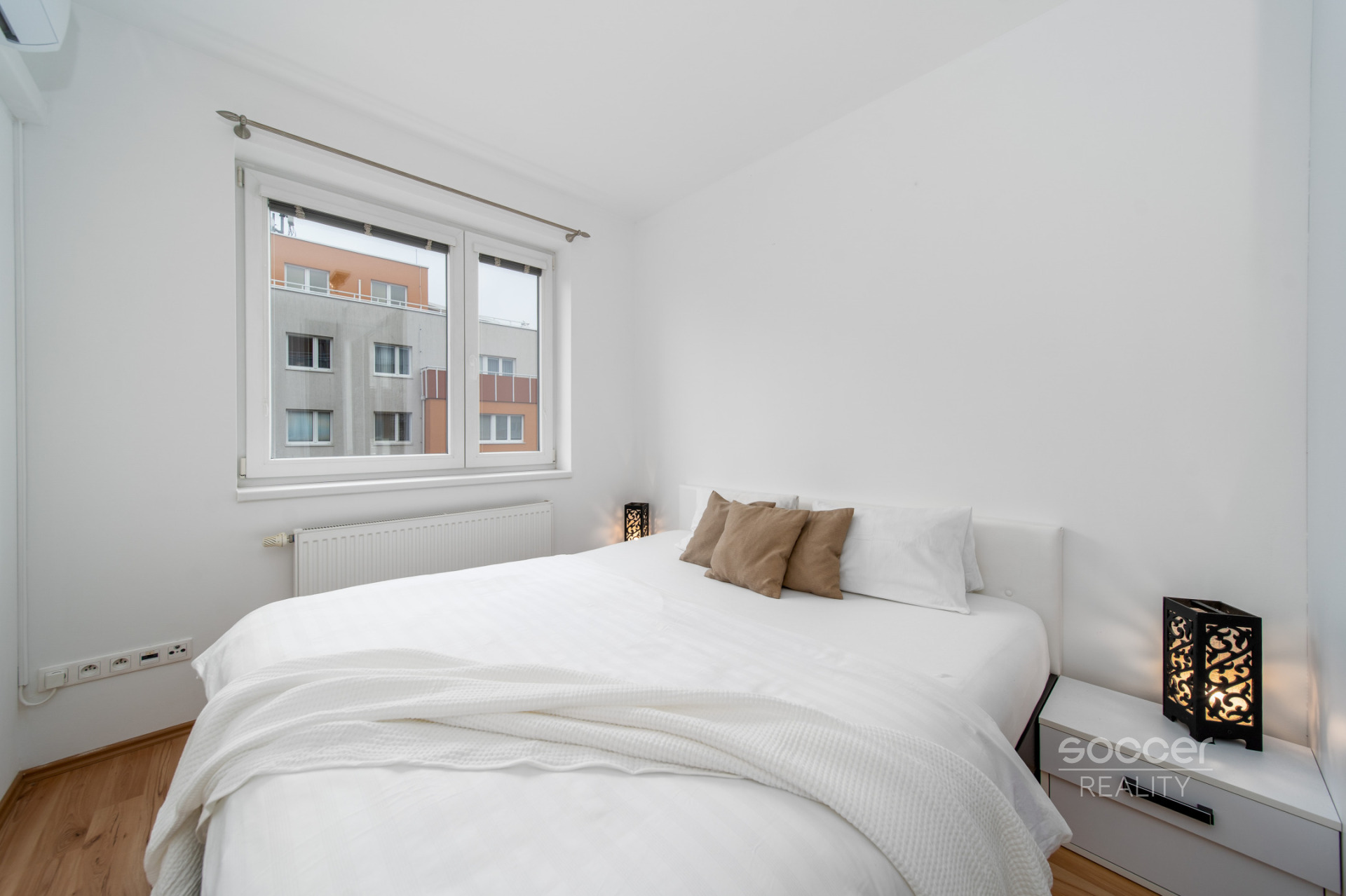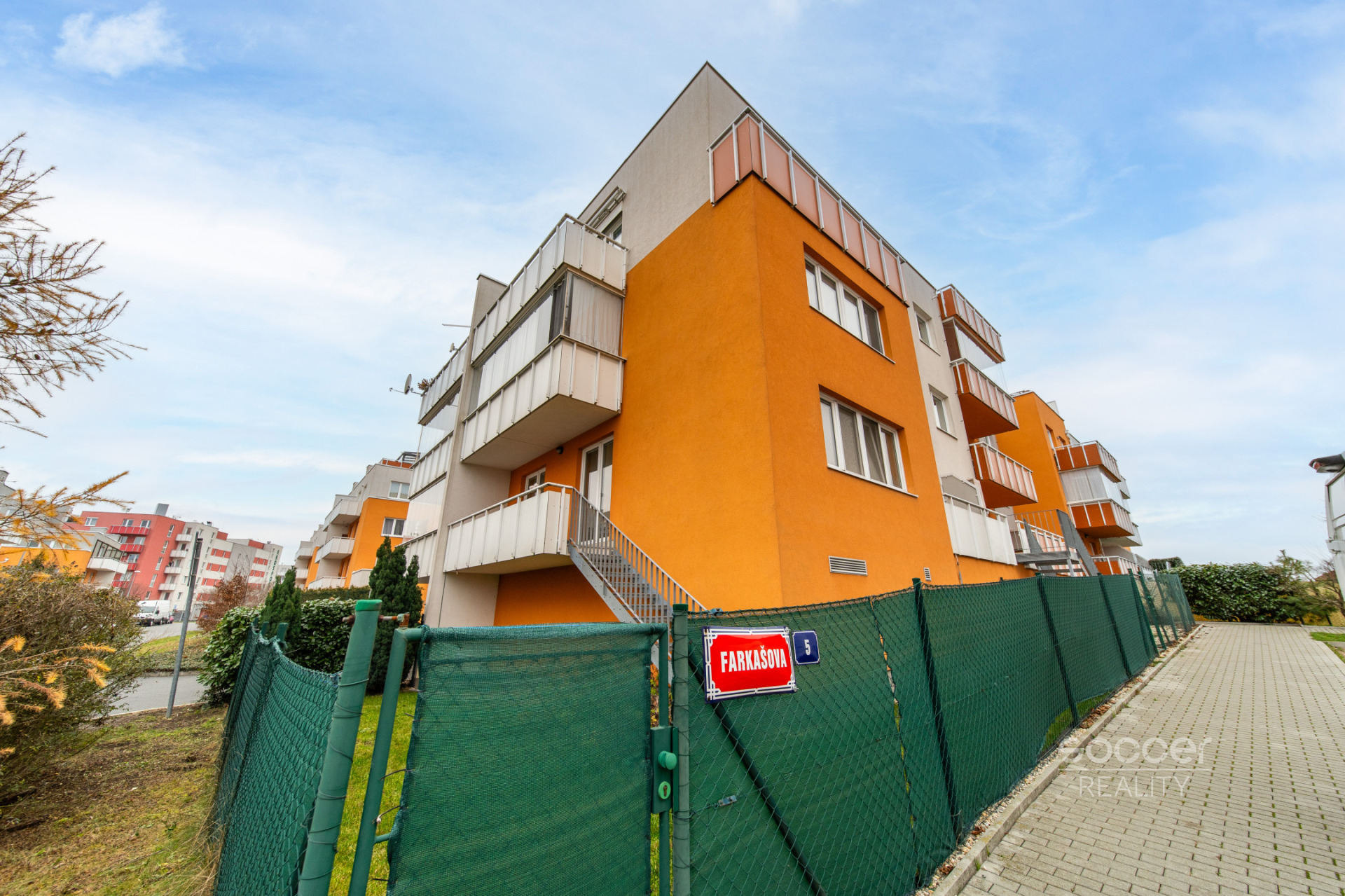 Soccer Reality výhradně zprostředkuje koupi bytu 2+kk o celkové ploše 56 m2 včetně balkonu, umístěného ve 2. patře moderního bytového domu v klidné ulici Farkašova, Praha 9 - Kyje. Byt má východní orientaci, je dobře prosvětlený a vybaven klimatizací, která zvyšuje komfort bydlení zejména v letních měsících. Dispozice je řešena velmi prakticky. Ze vstupní chodby je samostatný přístup do všech místností. Byt nabízí oddělenou ložnici, obývací pokoj a koupelnu s toaletou. Kuchyňský kout je umístěn ve vlastním výklenku, není tedy přímo součástí obývacího prostoru, což je výrazná výhoda z hlediska komfortu bydlení. Kuchyňská linka je vybavena vestavnými spotřebiči - elektrickou troubou, mikrovlnnou troubou, indukční varnou deskou, vestavnou lednicí s mrazákem, myčkou nádobí a digestoří s odtahem. Z obývacího pokoje je vstup na prostorný balkon o velikosti 7,75 m2, který nabízí dostatek místa pro posezení. Ložnice disponuje vestavnou skříní na míru. Koupelna je společná s WC a je vybavena vanou. V obytných místnostech jsou plovoucí podlahy, v koupelně a předsíni dlažba. K bytu náleží garážové parkovací stání v podzemních garážích domu, které je ve výlučném užívání. Další parkování je možné v okolí domu. Bytový komplex v Kyjích je výbornou kombinací klidu a ruchu velkoměsta. Lokalita jako taková je tichá a příjemná, do centra města se ale autem dopravíte během chvíle. K dispozici je i autobusová zastávka Sicherova, odkud se svezete na Černý Most nebo do Holešovic. V okolí najdete několik restaurací, fitness, mini-market. Nákupní centra Černý Most a Letňany jsou v dojezdové vzdálenosti přibližně 5-10 minut. Byt je vhodný pro jednotlivce nebo pár, kteří hledají funkční dispozici, balkon a garážové stání v klidné lokalitě s rychlou dostupností města. Prodávající si vyhrazuje právo vybrat kupujícího dle jím zvolených kritérií.