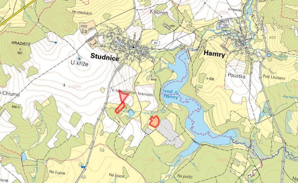 Nabízíme k prodeji tři zemědělské pozemky ve výlučném vlastnictví, nacházející se v katastrálním území Studnice u Hlinska (okres Chrudim). Pozemky jsou zapsány na listu vlastnictví č. 119 a leží v malebné krajině v blízkosti vodní nádrže Hamry, v klidném prostředí s čistou přírodou a zemědělským charakterem. Konkrétně se jedná o: parcelu č. 1446/7 o výměře 9 096 m (orná půda), parcelu č. 1471 o výměře 8 542 m (trvalý travní porost), parcelu č. 1886 o výměře 13 698 m (orná půda). Celková výměra všech pozemků činí 31 336 m, z toho 22 794 m tvoří orná půda a 8 542 m trvalý travní porost. Travní pozemky se nachází v bezprostřední blízkosti lesa, což přináší přirozenou ochranu. Pozemky jsou v současné době jsou pronajaty soukromému zemědělci za vysoké pachtovné. V uvedené ceně je již zahrnuta provize. Součástí prodeje je také zajištění kompletní administrativy a právního servisu. Staňte se členem MojePole Plus a získávejte výhodné nabídky přímo do své e-mailové schránky. Pro nezávaznou poptávku využijte formulář dostupný na našich stránkách. Majitel si vyhrazuje právo vybrat kupujícího na základě nabídky.