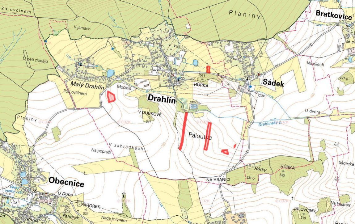 V katastrálním území Drahlín, okres Příbram, nabízíme k prodeji soubor zemědělských pozemků ve výlučném vlastnictví. Pozemky jsou zapsány na listu vlastnictví č. 39 a tvoří je celkem 7 parcel: parc. č. 318 (orná půda) parc. č. 339 (orná půda) parc. č. 394 (orná půda) parc. č. 476/5 (orná půda) parc. č. 722 (orná půda) parc. č. 200 (trvalý travní porost) parc. č. 978/27 (vodní plocha) Celková výměra těchto pozemků činí 32 127 m. Všechny parcely jsou ve 100% vlastnictví. Staňte se členem MojePole Plus a získávejte výhodné nabídky přímo do své e-mailové schránky. Pro nezávaznou poptávku využijte formulář dostupný na našich stránkách. Pro více informací o tomto pozemku mne kontaktujte telefonicky nebo e-mailem. Pozemek nabízím k exkluzivnímu prodeji v zastoupení vlastníka. Cena je uvedena včetně provize. Majitel si vyhrazuje právo vybrat kupujícího na základě nabídky.