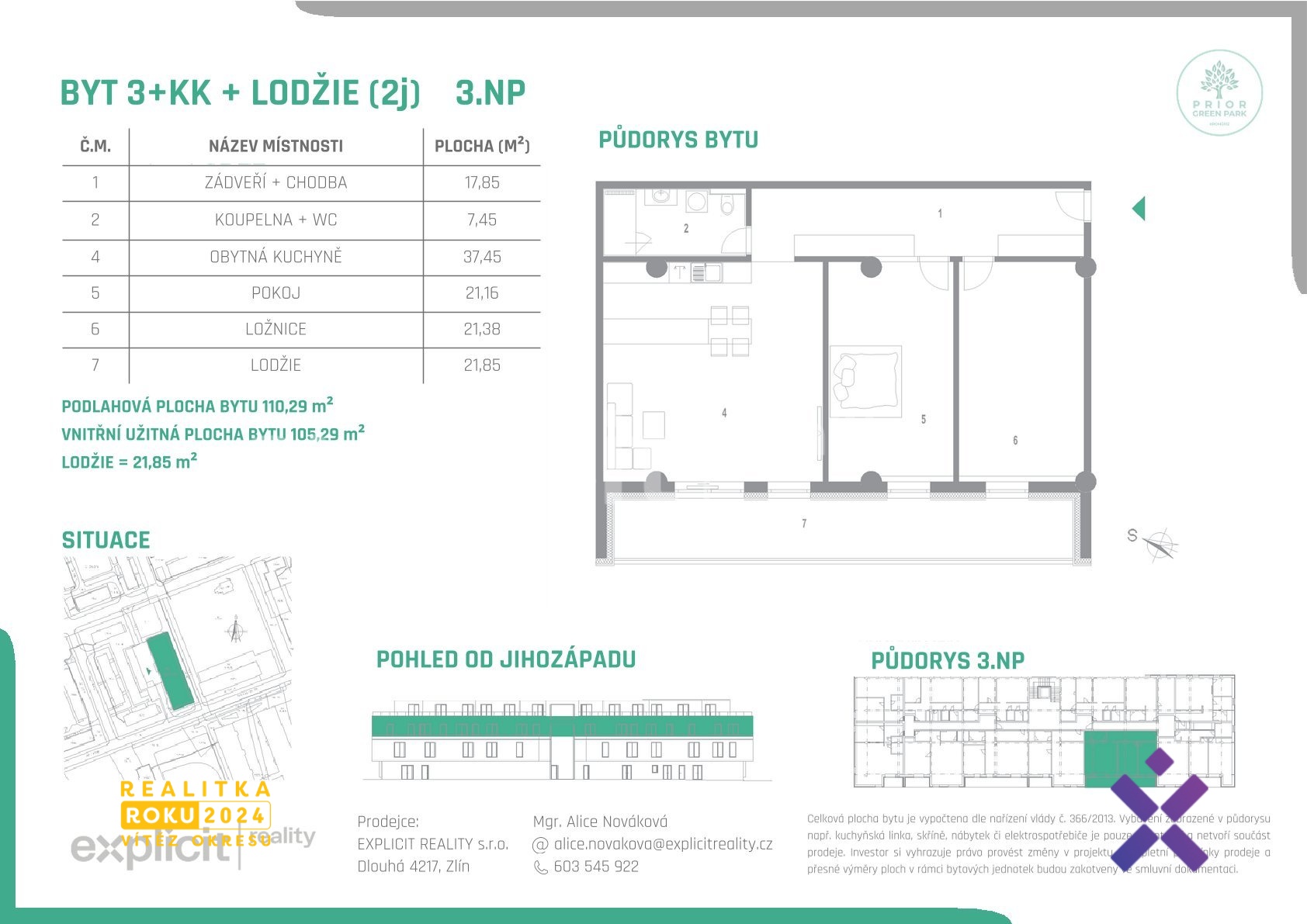 Prodej bytu 3+kk s lodžií 110,29 m2, Prior Green Park Kroměříž