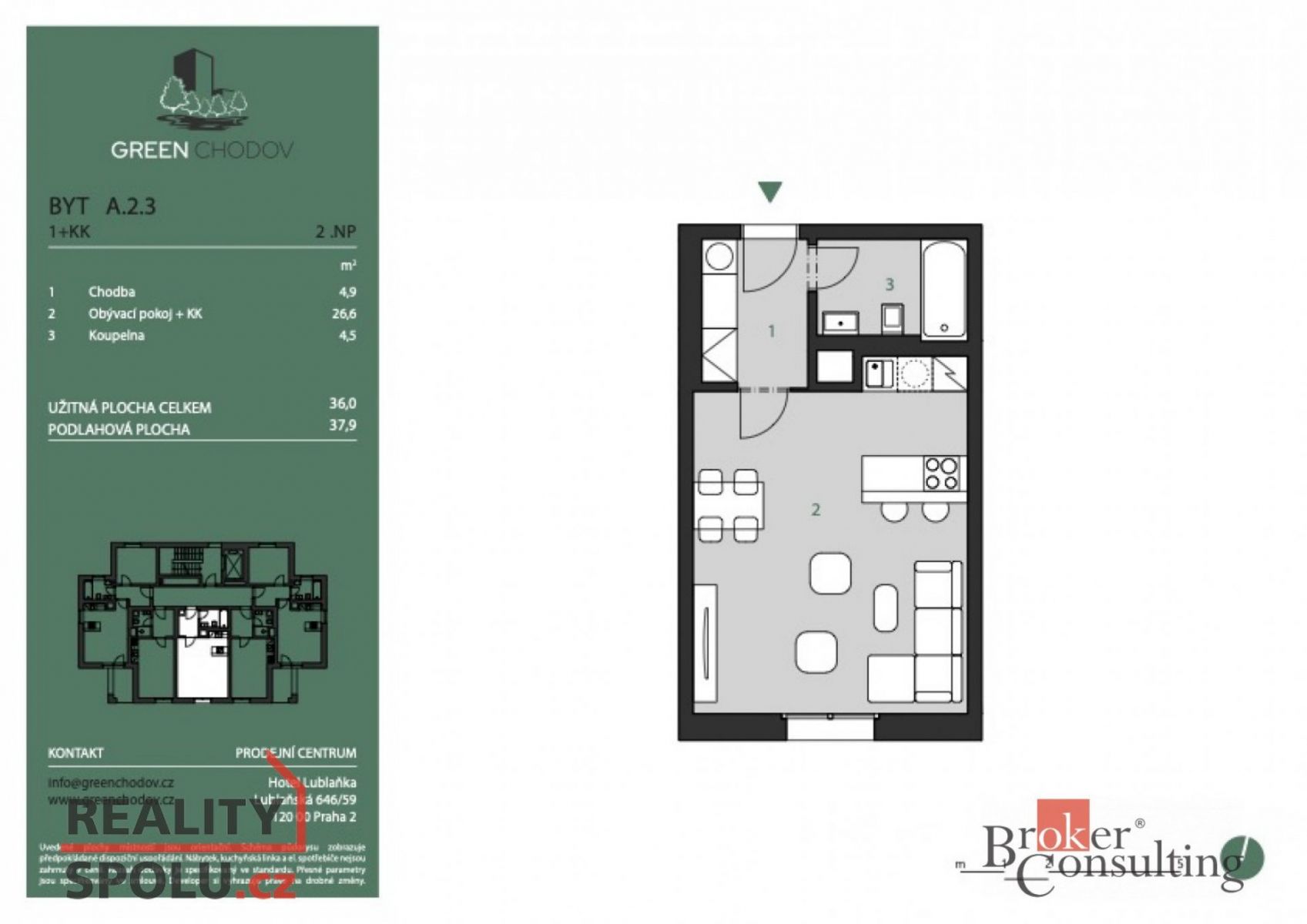 Představujeme vám rezidenční projekt Green Chodov spojení komfortního městského života s klidem přírody. Moderní architektura, vysoký standard a atraktivní lokalita dělají z Green Chodova jedinečné místo pro bydlení i investici. 5 důvodů proč Green Chodov Jaké jsou největší lákadla a co kupující milují nejvíc? Mimořádná lokalita pár minut chůze na metro Chodov či Roztyly, 2 autobusové zastávky přímo u domu, v budoucnu i plánovaná tramvajová trať. Vše po ruce Westfield Chodov, supermarket i veškerá občanská vybavenost v pěší dostupnosti. Harmonie s přírodou přímé napojení na park Trojmezí a přírodní jezírko pro relax i sport. Vysoký standard rekuperace ve všech jednotkách, klimatizace ve vyšších patrech, dřevěné podlahy, sádrové omítky, předokenní žaluzie a nadstandardní výška stropů min. 2,75 m. Pro každého od praktických 1+kk a 2+kk až po exkluzivní mezonety. Projekt Green Chodov se skládá z 11podlažního bytového domu a 2podlažního polyfunkčního domu se společným podzemním parkováním. Je ideální jak pro vlastní bydlení, tak i jako bezpečná investiční příležitost díky blízkosti metra, administrativních center a přírody. Projekt byl nominován na Realitní projekt roku 2025, což potvrzuje jeho výjimečnost a kvalitu. ________ V rámci projektu je k dispozici větší 1+kk s podlahovou plochou 38 m, který nabízí nadstandardní prostor v kategorii startovacích bytů. Díky promyšlenému dispozičnímu řešení poskytuje dostatek místa nejen pro pohodlné bydlení jednotlivce či páru, ale i pro dlouhodobé využití bez kompromisů. Tento typ jednotky je ideální volbou pro ty, kteří hledají kombinaci moderního bydlení, kvalitního standardu a vysoké likvidity do budoucna ať už pro vlastní užívání, nebo jako stabilní investici v prémiové lokalitě Prahy 4 Chodov.