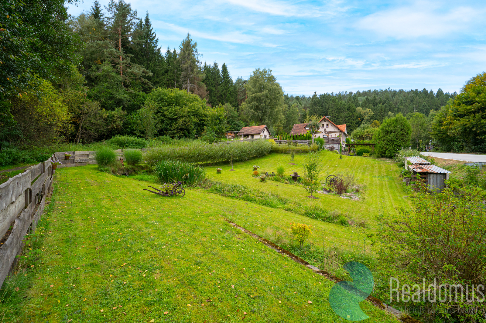Nabízím Vám ve výhradním zastoupení majitele prodej rodinného domu na klidném okraji obce Nahořany, nedaleko Českého Krumlova. Dům o dispozici 4+1 nabízí krytou verandu, útulnou terasu a rozlehlý pozemek, který poskytuje dostatek soukromí a prostor pro odpočinek i aktivní trávení volného času. Pečlivě udržovaná zahrada s menším jezírkem a několika příjemnými zákoutími je ideálním místem pro relaxaci či rodinné posezení. Součástí nemovitosti je také samostatná dílna, která potěší každého kutila nebo tvořivého ducha. Dům je dispozičně řešen tak, aby poskytoval komfortní a praktické bydlení. V přízemí se nachází zastřešená veranda se vstupní chodbou, kuchyně, prostorný obývací pokoj s krbovými kamny, pokoj pro hosty, koupelna s vanou a WC, technická místnost a komora. Toto uspořádání umožňuje pohodlné každodenní fungování domácnosti a dostatek úložných prostor. V podkroví domu se nachází galerie, další pokoj, ložnice s lodžií a samostatné WC, což zajišťuje soukromí i komfort pro všechny členy rodiny. Nemovitost nabízí řadu praktických i estetických výhod. Udržovaná zahrada s vlastní studnou, menším jezírkem a bazénem je ideální pro relaxaci i volnočasové aktivity. Samostatná zděná dílna poskytuje prostor pro kutily nebo hobby činnosti. K dispozici je garáž, kryté parkovací stání a sklepní prostory, krytá veranda a terasa zase nabízejí příjemné místo k posezení. Nízké provozní náklady zajišťují ekonomické a komfortní bydlení. Neváhejte a přijďte se přesvědčit, že tento dům může být Vaším novým domovem. Pro více informací a domluvení prohlídky mě neváhejte kontaktovat, rád Vám dům ukážu osobně. Uvedené výměry jsou orientační. V případě více zájemců bude nemovitost prodána nejlepší nabídce, přičemž majitel si vyhrazuje právo výběru kupujícího dle vlastních kritérií. Veškeré zveřejněné údaje mají pouze informativní charakter.