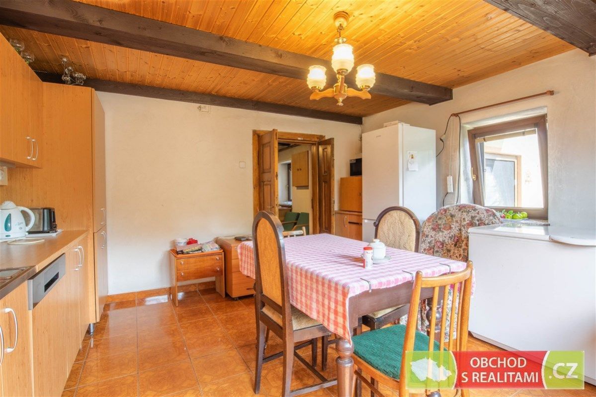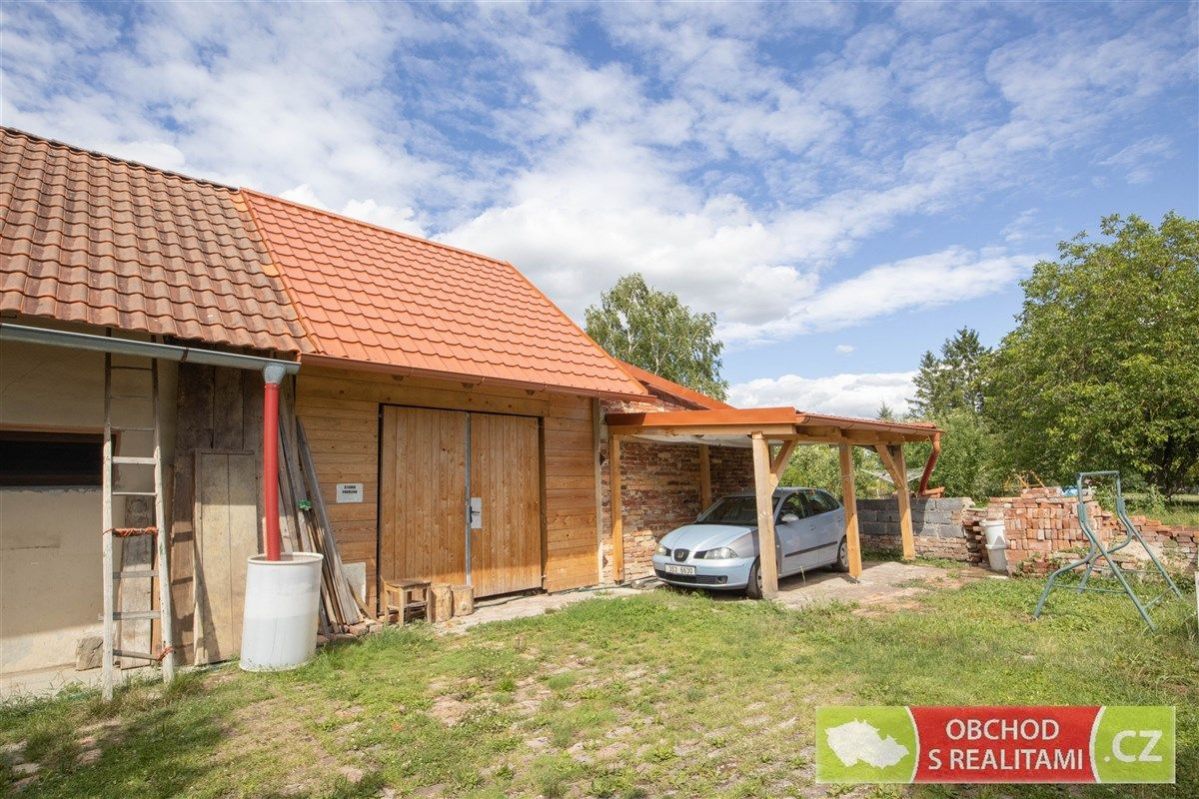 Rodinný dům se nachází na adrese Nová Ves 17, 289 02 Chotěšice (Nová Ves), příklady dojezdové vzdálenosti jsou: 11 km Městec Králové nebo Kopidlno 23 km Jičín 30 km Nymburk nebo Poděbrady 35 km Kolín 44 km Hradec Králové 88 km Praha Nová Ves je klidnou vesničkou, nemovitosti jsou zde užívány k trvalému bydlení i víkendové rekreaci. Automobilová doprava je mírná, jen místní obyvatelé, autobusové spoje nebo občas zemědělská technika, naleznete zde klid! Jediný soused přiléhá k rodinnému domu ze severu, kam nejsou orientována okna, na pozemku je tak dostatek soukromí. Dům má veškerá okna orientovaná na jih nebo západ s výhledem do vlastního dvorku. Zahrada je dobře obslužná, když přiléhá k místní asfaltové silnici, je tak možné zahradu obhospodařovat technikou nebo zde prostě jen zaparkovat. Rodinný dům nabízí dispozici 2+1, malý sklep, volnou půdu (dosud bez vestavby pokojů), stodolu s velkými vraty (například možnost parkování nebo skladování), velkou dílnu a venkovní kryté parkovací stání. Protože na úpravy domu bylo vydáno (dosud platné) stavební povolení, máme pro Vás k dispozici kompletní zaměření jednotlivých částí domu, řez domem, technickou zprávu a jiné podklady ze stavební dokumentace. Stavební povolení je platné do 8/27, a tak je dostatek času realizovat případné další úpravy domu. Maximální zastavitelnost je 40% z celkové výměry pozemku. Aktuálně byla dokončena rekonstrukce stodoly, tedy vyzděna její severní zeď, nový je krov i střešní krytina nad stodolou, dále je nová střešní krytina nad dílnou a krytým parkovacím stáním, nová jsou též vrata do stodoly. Již dříve (10 až 25 let nazpět) byla přeložena střecha nad obytnou částí, vyměněna elektroinstalace za rozvody v mědi, voda a odpady jsou v plastu, nová skladba podlah v přízemí domu, vyměněna okna za plastová, nové rozvody topení a radiátory s napojením na výměník u krbových kamen, nově bylo vyvložkováno i komínové těleso. Ohřev vody je boilerem. Dům jen napojen na: veřejný vodovod, dále se na pozemku nachází studna elektřinu s jističem 3 x 25 A Plyn v obci není, kanalizace také ne, a tak je odpad sveden do jímky. Na nemovitosti neváznou žádná omezení, hypoteční úvěr je možný. Nemovitost je dosud užívána k trvalému bydlení.