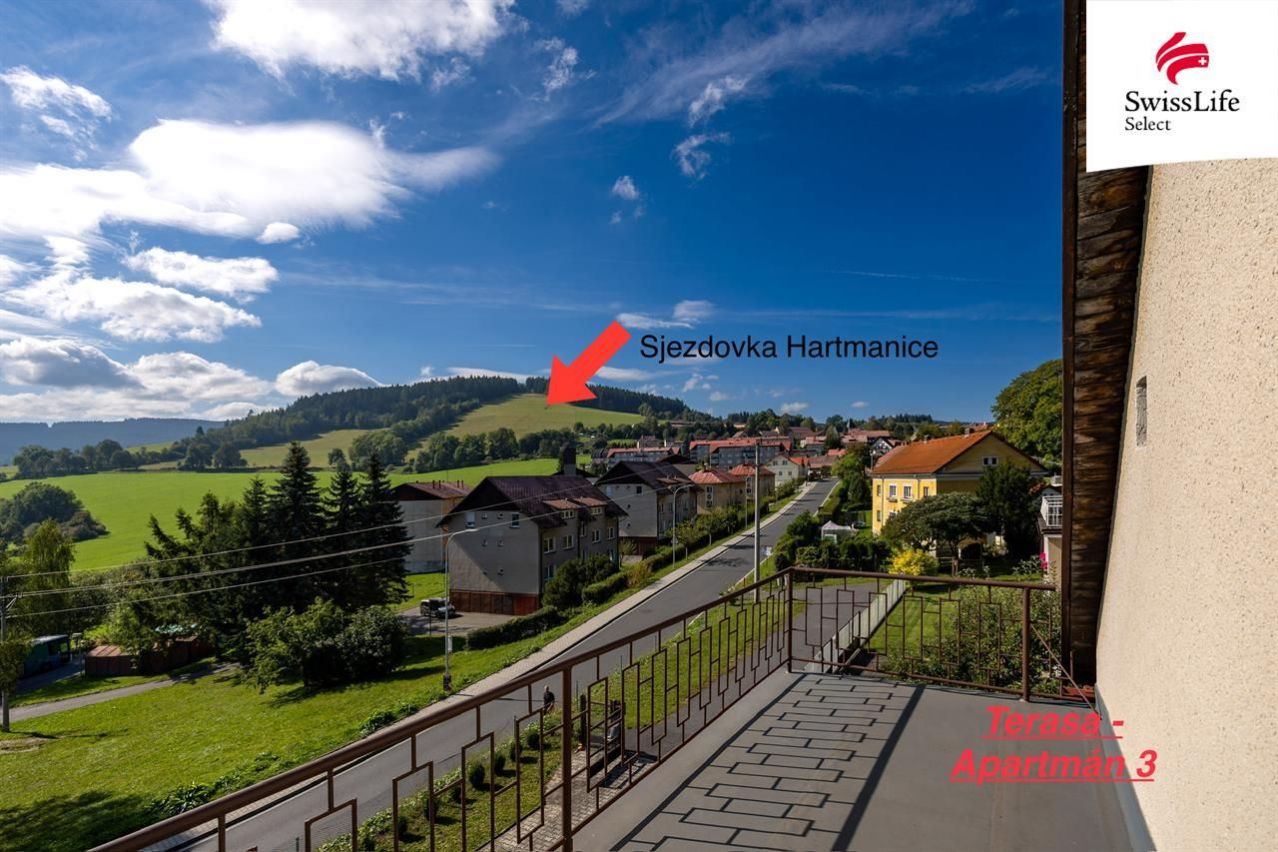 Nabízíme k prodeji třípatrový rodinný dům s krásným výhledem do údolí v městě Hartmanice, nacházející se v samém srdci malebné Šumavy. Nemovitost je situována na udržované zahradě o rozloze 791 m, s zastavěnou plochou 153 m. Součástí domu je také přístavba s garáží a terasou, která nabízí prostor pro relaxaci. Dispozice domu více jak 5+1 + 3 koupelny, šatny, chodby, haly. Tato dispozice domu se nabízí jak k využití pro početnou rodinu nebo ke komerčnímu krátkodobému či dlouhodobému využívání. Dům ve výborném technickém stavu, nabízí moderní pohodlí s duálním vytápěním objektu můžete využít místní dálkové vytápění nebo centrální kotel značky Kovarson Gekon kombi 25kw na tuhá paliva se zásobníkem. V domě zavedený internet, což umožňuje pohodlné připojení k online světu i v této klidné lokalitě. Objekt napojen obecní kanalizaci, vodovodní řad. Okna v plastovém provedení. Nemovitost se nachází v blízkosti lyžařského areálu Hartmanice, což ocení nejen milovníci zimních sportů, ale i rodiny s dětmi. V létě lokalita nabízí nesčetně tras pro cykloturistiku. Město Hartmanice nabízí občanskou vybavenost restaurace, školu, školku, nákupní středisko, spojení zajišťují autobusové linky ARRIVA. Pokud hledáte bydlení v krásné přírodě s veškerým komfortem nebo objekt na krátkodobé komerční ubytování, je tento dům ideální volbou. Cena k jednání. Pro více informací a prohlídku nás neváhejte kontaktovat!