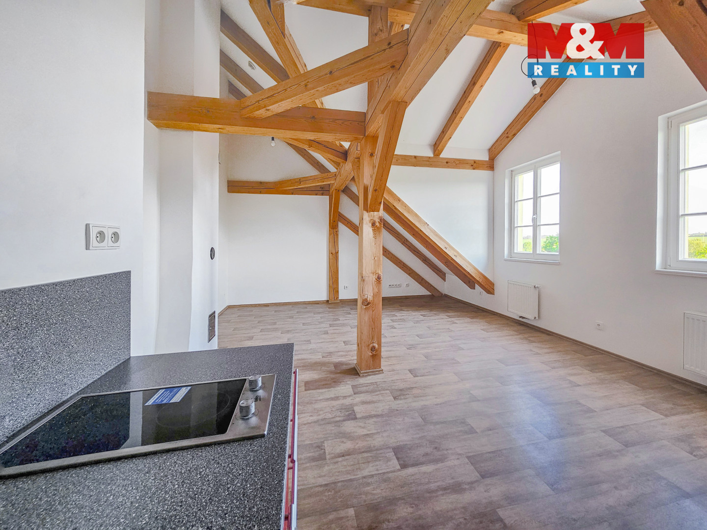 Nabízíme k pronájmu krásný podkrovní jižně orientovaný byt 1+kk, 37,17 m2 v obci Studeněves. Byt se nachází ve 2. patře panského domu, který prošel kompletní rekonstrukcí. Nová kuchyňská linka s el. dvouplotnou, předsíň, v koupelně sprchový kout, toaleta, topný žebřík a přípojka na pračku. Vzduchotechnika s rekuperací vzduchu a nová okna zaručují velmi příjemné bydlení. K dispozici je přilehlá společná zahrada, vlastní parkoviště přímo u domu s bezpečnostními kamerami, přístřešek na kola, STA, možnost internetu. Z parkoviště se vstupuje přímo do 1. patra budovy. Byt je ideální pro jednotlivce nebo páry, kteří hledají klidné a moderní bydlení s rychlou dostupností do Slaného, kde naleznete veškerou občanskou vybavenost, obchody, plaveckou halu, nemocnici, vlak apod., Zásilkovna 50 m od domu. Jen 2 km od Slaného, 20 min. autem po D7 od stanice metra A Veleslavín, 15 min. od letiště Václava Havla. Pro více informací a domluvení prohlídky kontaktujte makléře.