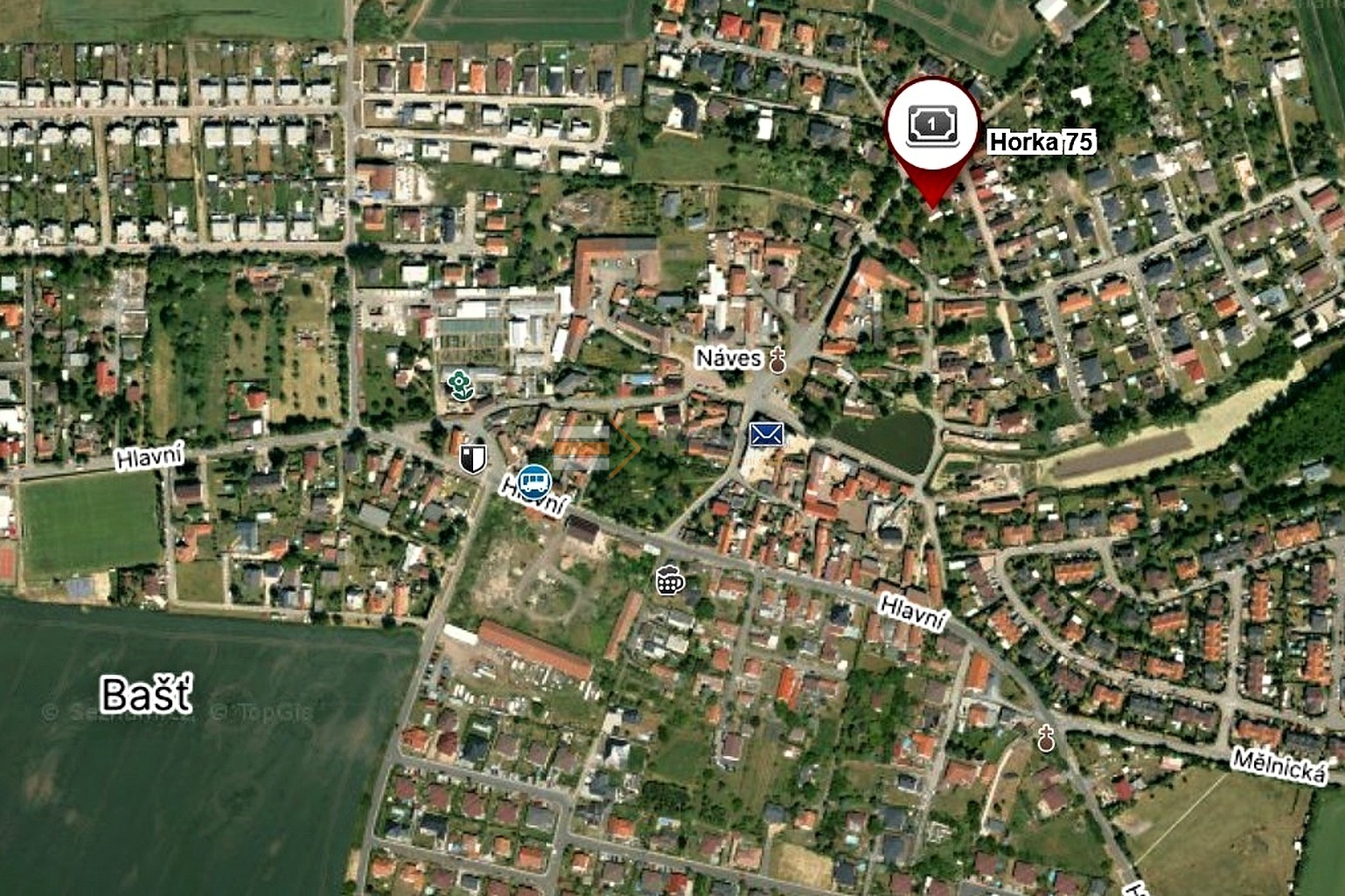 Nabízím Vám ke koupi stavební pozemek o výměře 2096 m2, na klidném místě v centrální části obce, na adrese Horka, Bašť. Na části pozemku se nachází původní stavba postavená v roce 1906, která je vhodná k odstranění. Dále se zde nachází kolna s přístřeškem, dva dřevníky a altánek. Na pozemku je k dispozici elektřina (400V), přípojka do obecní kanalizace, plynová přípojka a pitná voda je přivedena obecním vodovodem. Na pozemku je také kopaná studna s pitnou vodou, hloubka studny je 23m. Parkování je možné na dvoře. Na pozemku je velká a pěstěná zahrada. Například se zde nachází ovocné stromy (meruňka, broskev, jabloně, ořešáky, atp.), mnoho keřů, květin a bylin. Celý pozemek je odstíněný od sousedů a od silnice. Pozemek je přístupný třemi vjezdy. Nemovitost je vhodná k demolici původní stavby a výstavbě nového domu. Do budoucna bude možné na pozemku postavit další rodinný dům, jakmile bude posílena kapacita obecní ČOV. Občanská vybavenost je dostupná v místě (mateřská škola, nová základní škola, pošta, restaurace, venkovní posilovna, kavárna, atp.), ostatní občanská vybavenost je k dispozici v obci Líbeznice. Bašť leží severně od Prahy s výbornou dostupností hlavního města automobilem nebo autobusem. Nemovitost je vhodná jako investice.