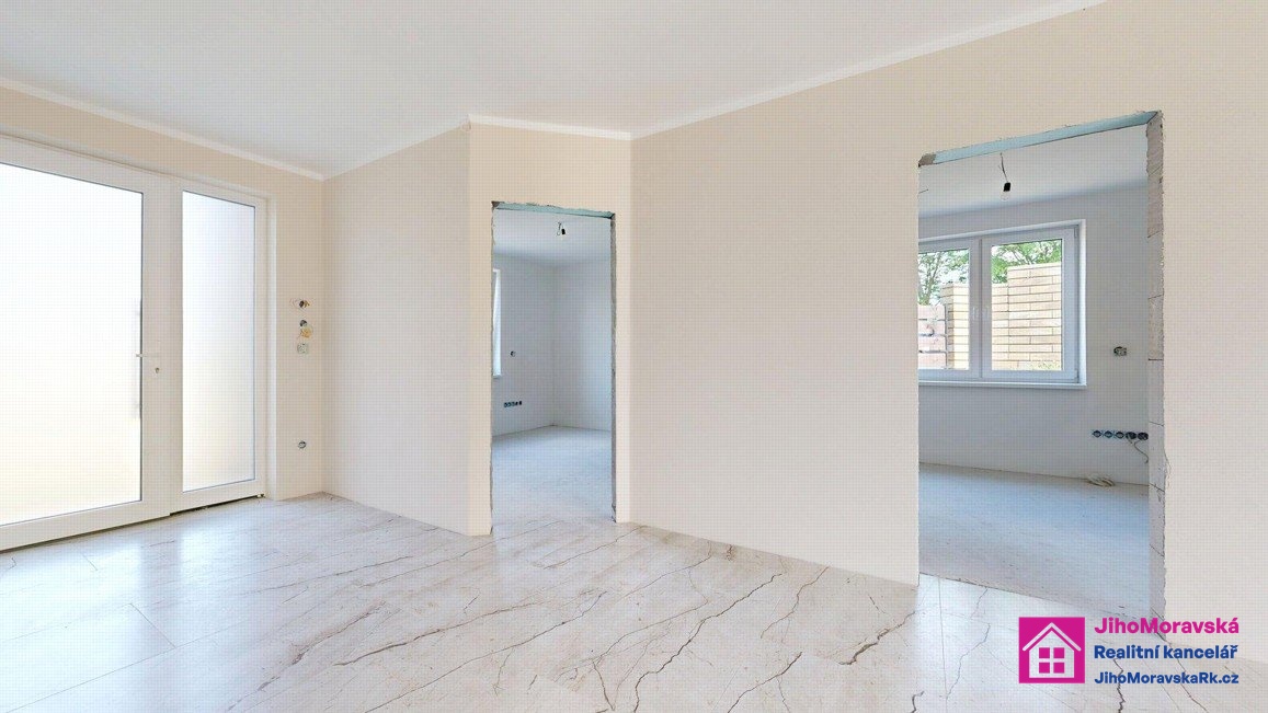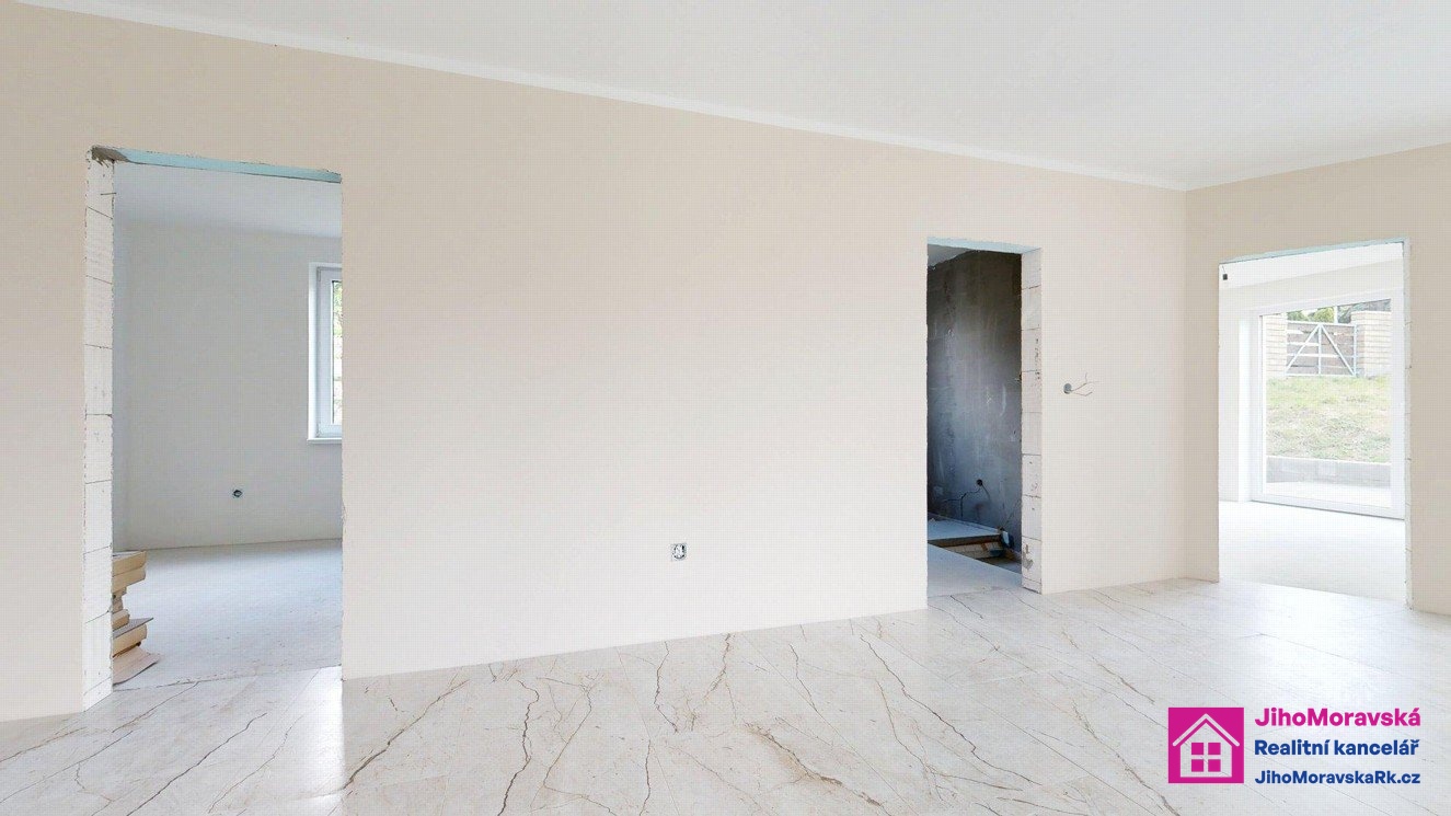 Rádi byste si doladily svůj nový domov podle Vašich představ? Hledáte prostorný dům s velkým pozemkem a s dobrou dostupností do Hustopečí, Klobouk u Brna nebo Hodonína? Ve výhradním zastoupení majitele, Vám zprostředkuji koupi stavby rodinného domu o velikosti 4+kk s dvougaráží, terasou a celkově oploceným pozemkem v menší obci Morkůvky, v okrese Břeclav. Užitná plocha domu 141 m2 s podlahovou plochou 230 m2. Celková plocha oploceného pozemku s plochou 983 m2. Celková zastavěná plocha domu včetně terasy je 273 m2. Dispozice domu: dvou garáž, technická místnost, šatna, chodba, toaleta, pokoj, pokoj, koupelna, pokoj, pokoj s kuchyňským koutem a terasa. Půdorys domu naleznete ve fotogalerii. Před nastěhováním je třeba dokončit koupelnu, kuchyň, zárubně, interiérové dveře apodlahy v pokojích.Podepsána smlouva na připojení na kanalizaci. Do Klobouk u Brna dojedete za 5 minut, do Hustopečí za 20 minut, do Hodonína za 25 minut a do Brna za 40 minut. Obec Morkůvky má základní občanskou vybavenost (obecní úřad, obchod s potravinami, dětské hřiště, sportovní areál). Zaujala Vás tato nabídka? Máte zájem pro prohlídku? Vám vyhovující termín prohlídky s kontakty na Vás (e-mail + tel. číslo) zasílejte na e-mail makléře, který Vás následně bude telefonicky kontaktovat...