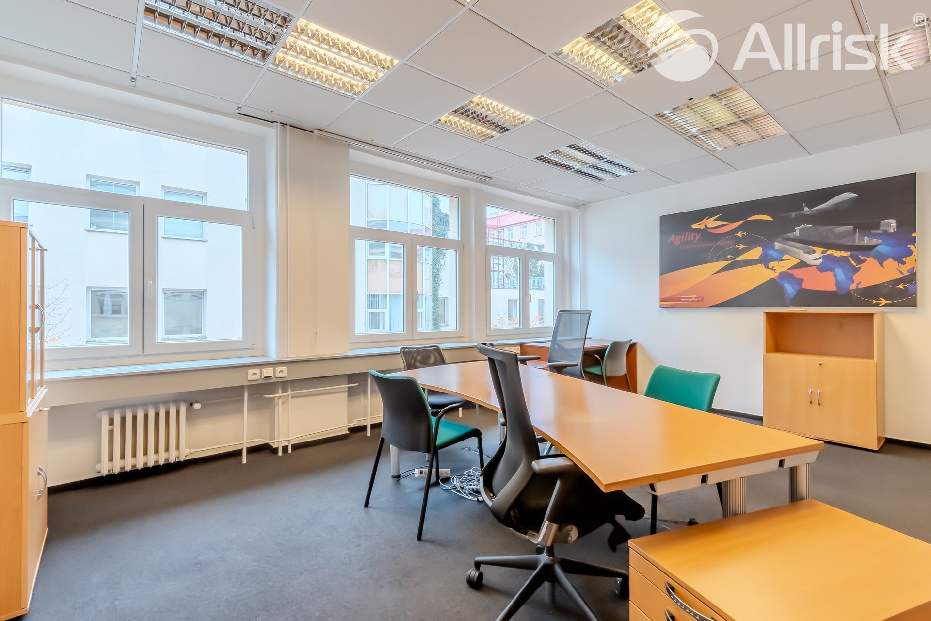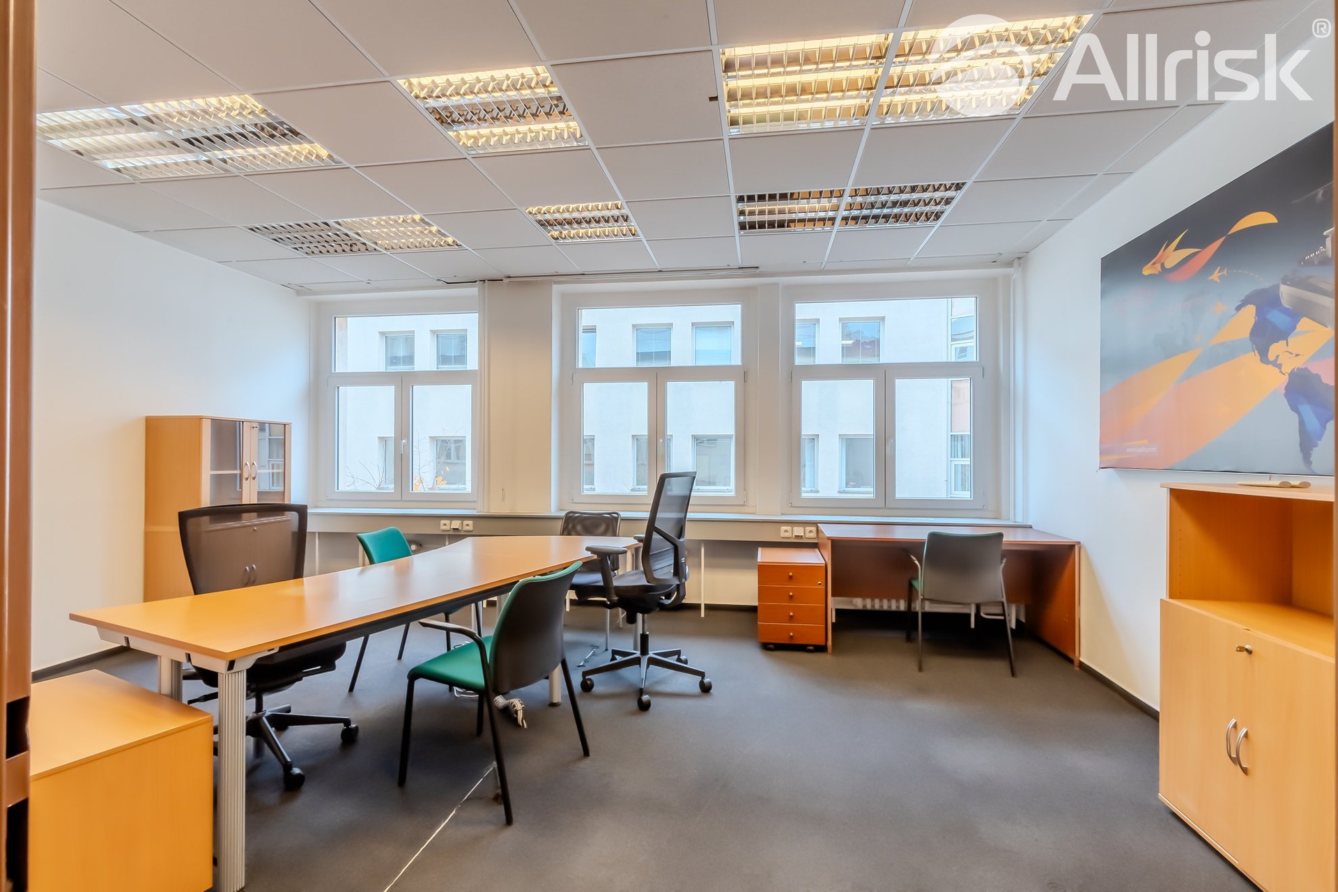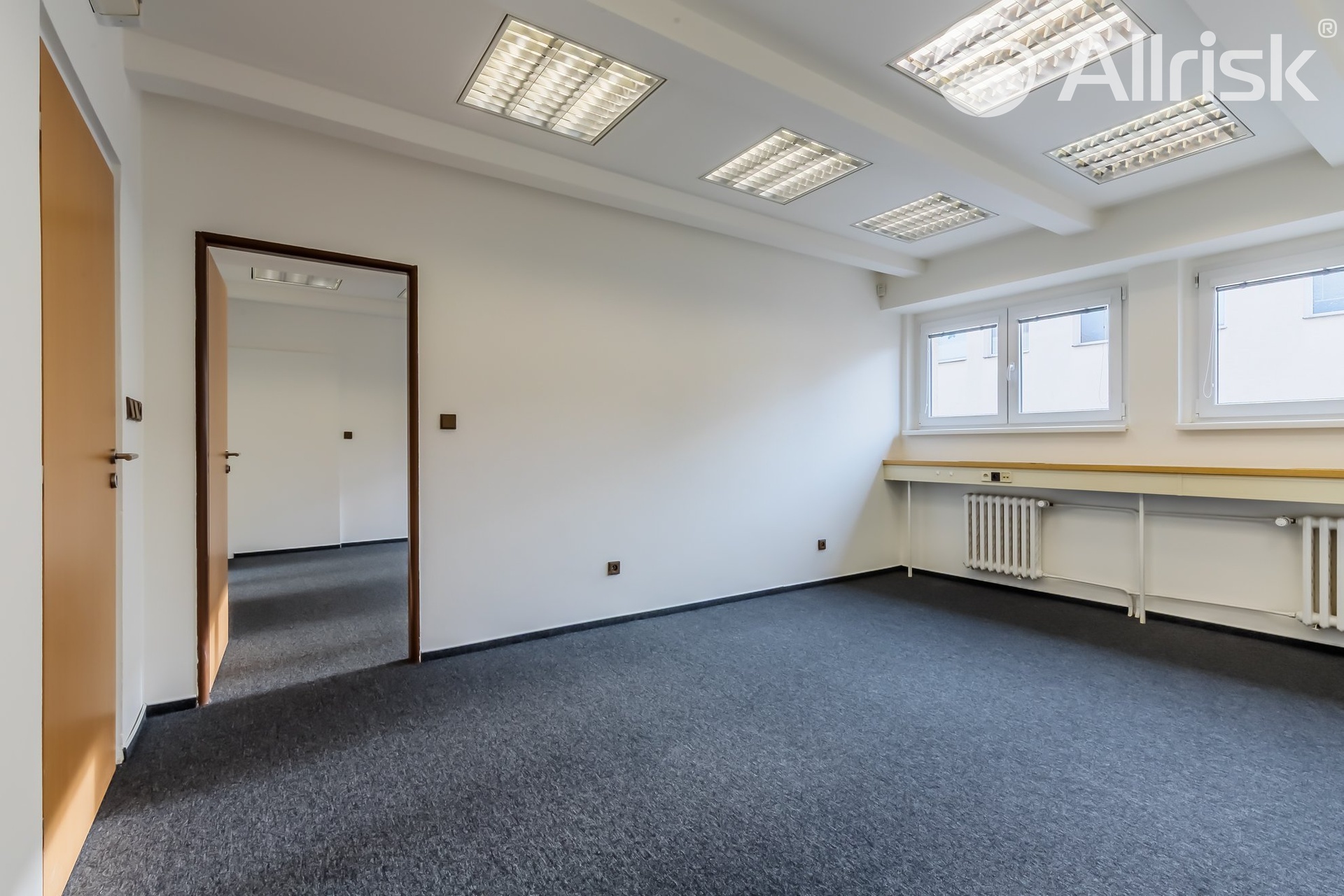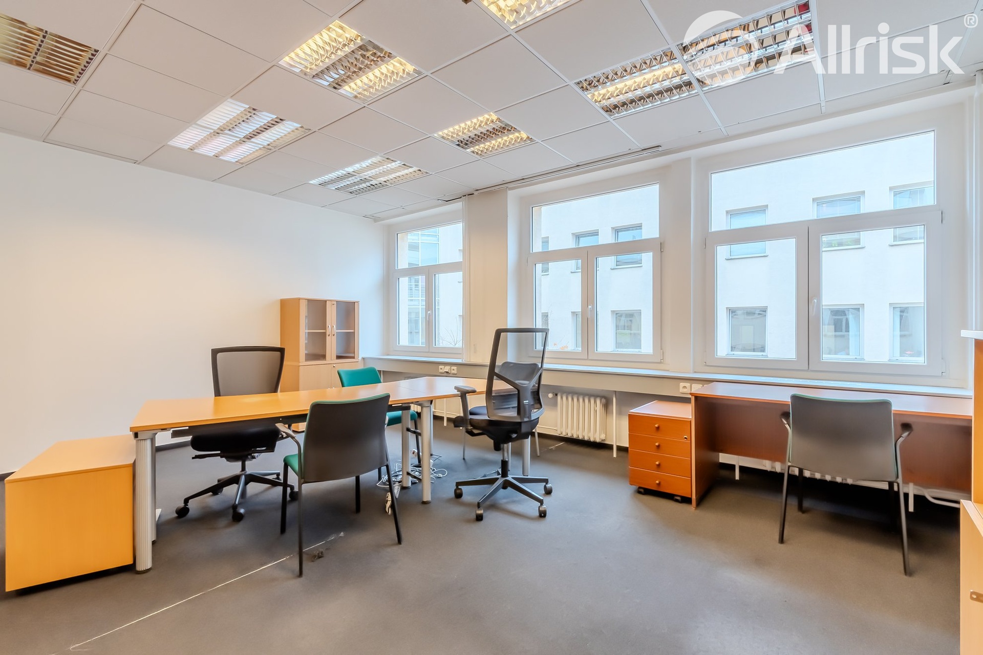 Nabízíme vám k pronájmu kanceláře různých velikostí, samostatné, či průchozí, propojené. Velikost kanceláří od cca 17 m2 až po pronájem více kanceláří, celého nebo půl patra, velikosti 100, 150 i více m2. Velmi dobře dopravně dostupné, v centru Prahy, u autobusového nádraží Praha Florenc. Přes to, že Karlín patří k rušnějšímu centru Prahy, kancelářský komplex je umístěn do klidného dvorního traktu, sestává ze dvou čtyřpatrových budov. K dispozici zde máme funkční Recepci, v každém patře je kuchyňka a WC. Přiložený plánek jednoho podlaží slouží pouze pro vaši představu rozložení kancelářských prostorů. Které kanceláře jsou aktuálně volné Vám na dotaz rádi předvedeme. Společně s nájemným, které činí 300,- Kč/m2, budete hradit zálohy na služby ve výši 163,- kč/m2, které jsou 1x ročně vyúčtovávány. Částky jsou uvedeny bez DPH. Při podpisu Nájemní smlouvy požadujeme složení Jistoty ve výši 3x měsíční nájemné včetně poplatků za služby a DPH. Provize pro RK činí 1x měsíční nájemné plus DPH v zákonné výši. Pro více informací a prohlídky, kontaktujte prosím, makléřku. Pokud jste si nevybrali z uveřejněné nabídky, zadejte nám prosím Vaši poptávku a my se pokusíme najít odpovídající nemovitost.