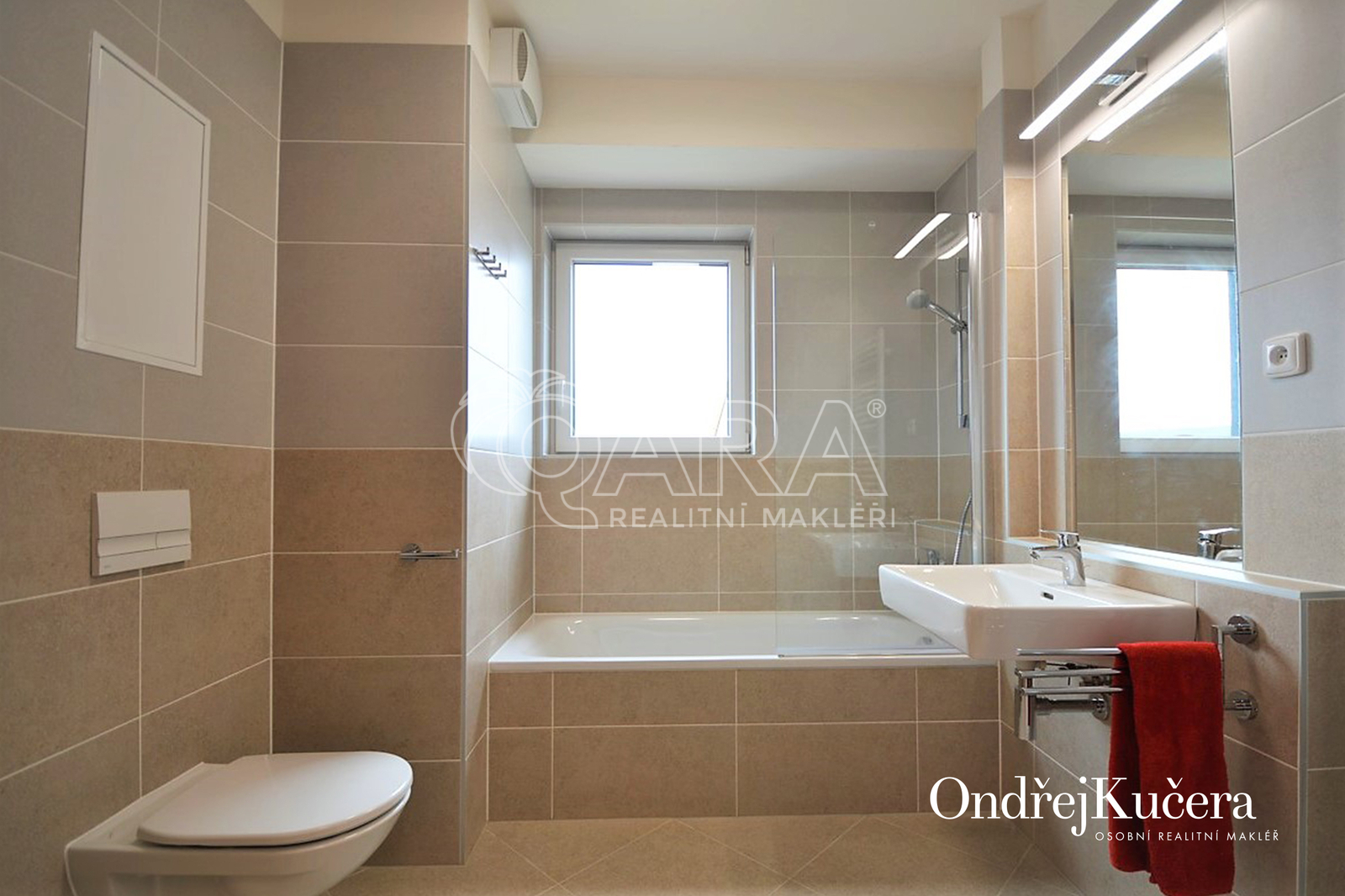 Prostorný a slunný byt 1+kk s terasou, celkovou výměrou 44 m2 a s garážovým stáním v domě s výtahem v ulici Drnovská 1167, Praha 6 - Ruzyně. Jedná se o projekt Byty u Šárky. Bezbariérový byt se nachází se ve třetím podlaží s jihozápadní orientací a otevřeným výhledem. Je prakticky řešený a částečně vybavený tak, aby splňoval veškeré potřeby pro komfortní bydlení. Kuchyňská linka včetně všech kvalitních spotřebičů - lednice s mrazákem, myčka, elektrická a mikrovlnná trouba, indukční deska, odsávací digestoř. V předsíni jsou úložné prostory formou zrcadlových vestavěných skříní. K tomu je samostatná komora s policovým systémem. V pokoji je kuchyňská linka a vstup na krytou terasu s výměrou 8,3 m2. V koupelně s oknem je vana se sprchovou zástěnou, toaleta a příprava na pračku. Podlaha v místnostech je plovoucí a dlažba v koupelně. Okna jsou plastová s izolačním trojsklem. V pokoji je rekuperace a nad okny garnýže. Vstupní bezpečnostní dveře a interiérové dveře od Sapeli. K dispozici je kolárna a kočárkárna. Skvělá dopravní dostupnost autem i MHD. Autobusová zastávka Dlouhá míle je minutu chůzí od domu. Na zastávku metra „A“ a také na vlakovou stanici Nádraží Veleslavín za dalších deset minut jízdy autobusem. Případně na tramvajovou zastávku Vozovna Vokovice za šest minut jízdy. Skvělé spojení autem na Pražský okruh a na letiště. Vše pro každodenní potřebu je v dostupné vzdálenosti. Přímo v areálu je sportovní hřiště s venkovní posilovnou. Přírodní rezervace Divoká Šárka s vodní nádrží Džbán do deseti minut chůzí od domu. Obchodní centrum Ruzyně dvě zastávky autobusem. Příjemné bydlení od seriózního majitele se zájmem dlouhodobého pronájmu za 19.000 Kč plus poplatky ve výši 4.200 Kč a elektřina, která se přepisuje na nájemníka. Byt je připravený k nastěhování od 1.2.2026. Pro bližší informace jsem Vám k dispozici. Ondřej Kučera osobní realitní makléř