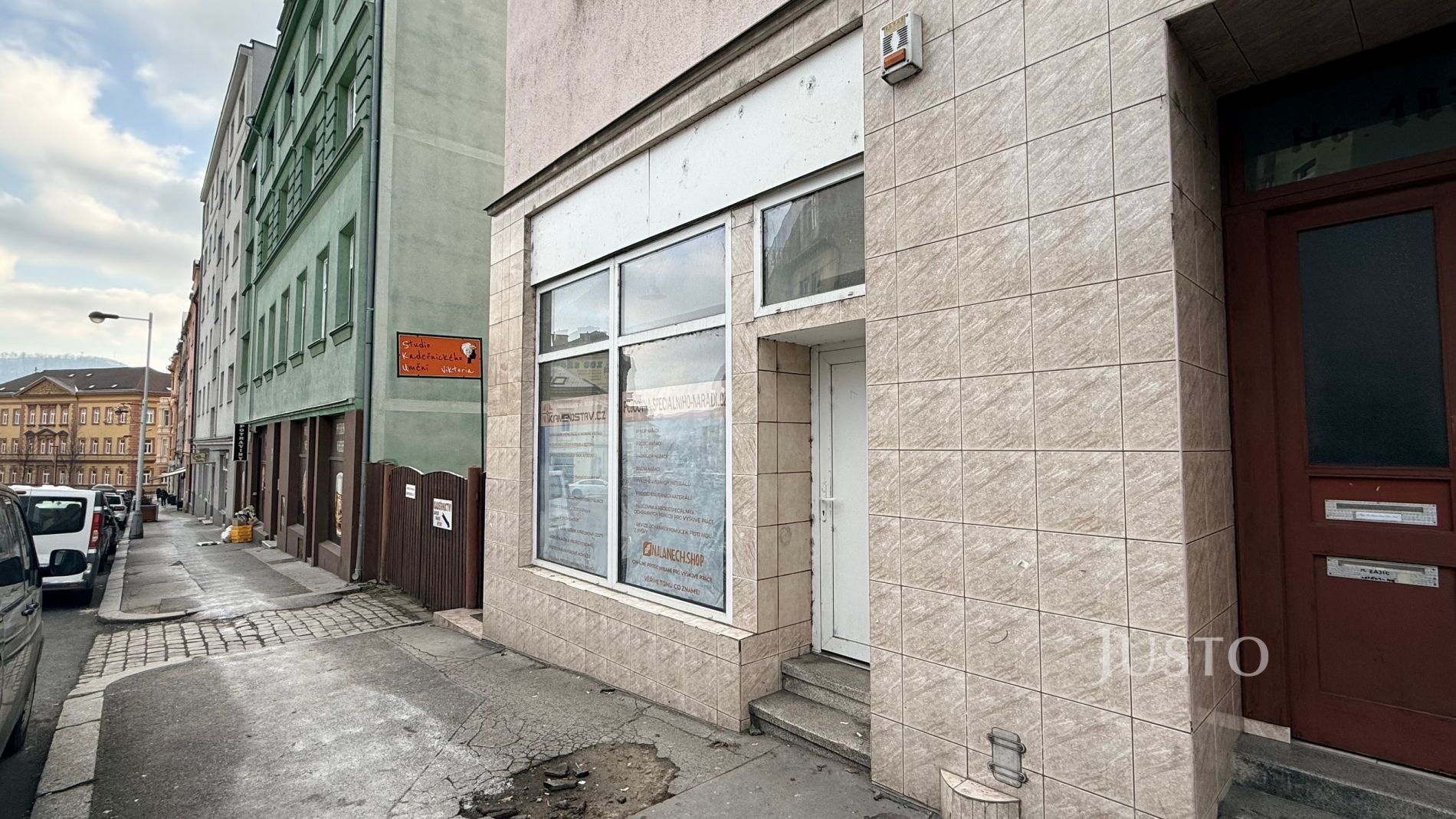 Pronájem komerčních prostorů v Děčíně Podmokly. Prostory jsou vhodné na kanceláře, prodejnu atd. Výhodou je vstup z hlavní silnice a prosklená výloha. Frekventovaná ulice. Součástí nebytových prostorů je jeden zabudovaný sejf ve zdi a jeden velký sejf. Vytápění plynem WAW. K prostorům patří i sklep, který má samostatný vchod ze dvora, který je chráněn vstupními dveřmi a také mřížemi. Sklep je odvětráván. Majitel upřednostňuje dlouhodobý pronájem. Možnost sídla firmy. Parkování je možné před budovou.