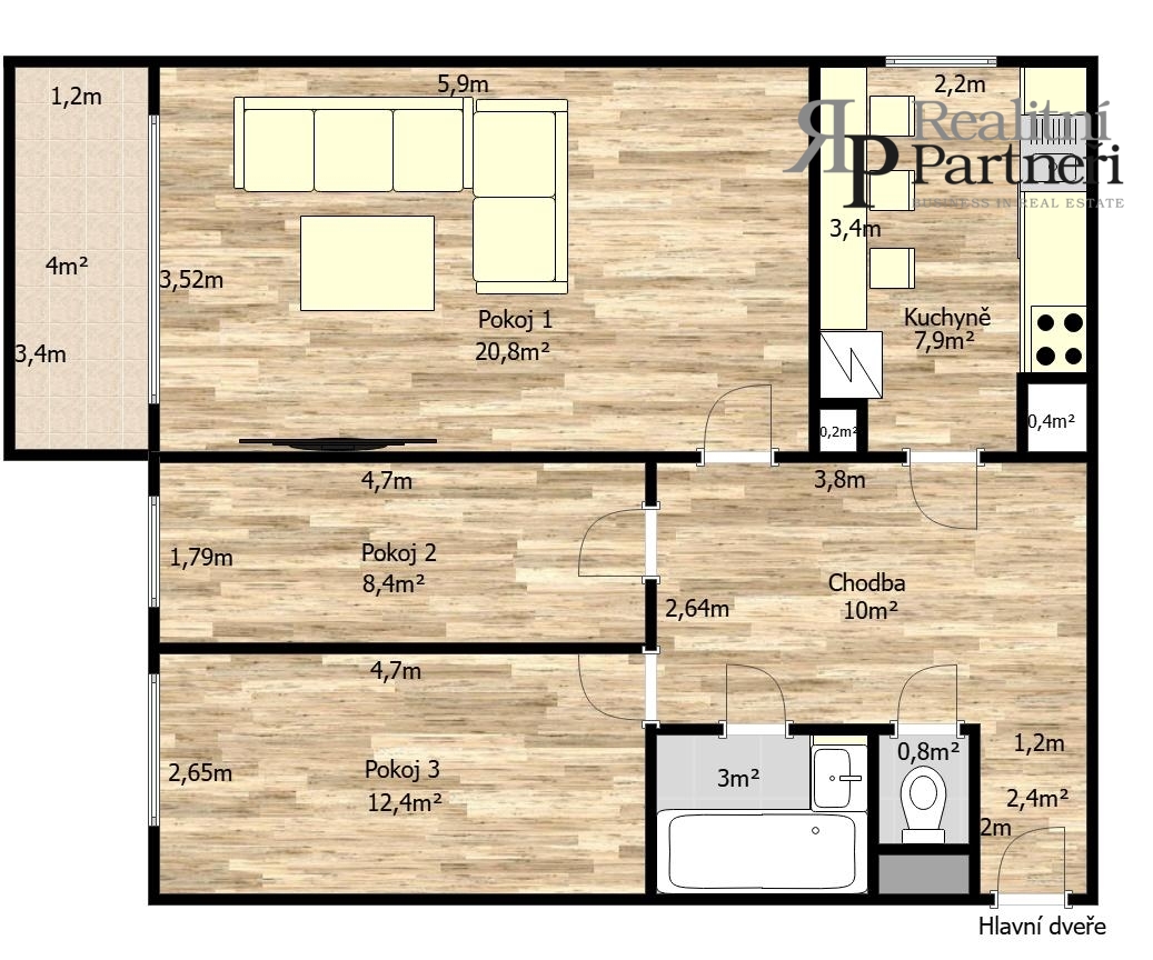 Nabízíme ke koupi byt v osobním vlastnictví o dispozici 3+1 se zaskleným balkonem, který se nachází v ulici Rilská 3181, Praha 4 - Modřany, v klidné a vyhledávané lokalitě plné zeleně. Bytová jednotka má celkovou výměru 70,85 m2 (z toho balkón 4,4m2 a komora na patře 2,3m2 )a je umístěna ve 3. nadzemním podlaží z celkových 12 v panelovém domě se dvěma výtahy. Byt prošel před cca 10 lety rekonstrukcí, při které bylo provedeno: zděné bytové jádro nové rozvody vody v plastu kompletně nové elektrické rozvody nové podlahy ve všech místnostech nové omítky a výmalba nové interiérové dveře V koupelně a na samostatném WC je položena dlažba a použity keramické obklady. Dům je po kompletní revitalizaci, která zahrnovala: výměnu původních oken za plastová nové rozvody vody a odpadů zateplení obvodového pláště nové vstupní prostory nové dva nákladní výtahy nová střešní krytina Byt se nachází v klidné části Modřan s výborným přístupem k přírodě. V docházkové vzdálenosti se nachází Modřanská rokle, přírodní údolí s lesními cestami ideálními pro procházky, sport i relax. V bezprostřední blízkosti domu je také parková zeleň, Borový rybník a Zookoutek Kamýk, které jsou vhodné pro krátké vycházky i rodiny s dětmi. Lokalita nabízí příjemné bydlení v zeleni s minimem ruchu, přesto s velmi dobrou dostupností MHD a občanské vybavenosti. Byt je ideální volbou pro rodinu, pár i jednotlivce, kteří hledají klidné a komfortní bydlení bez nutnosti dalších investic. Energetický štítek zatím nebyl vyhotoven, proto je nemovitost dle zákona označena energetickou třídou G. Pro více informací nebo domluvení osobní prohlídky nás neváhejte kontaktovat.