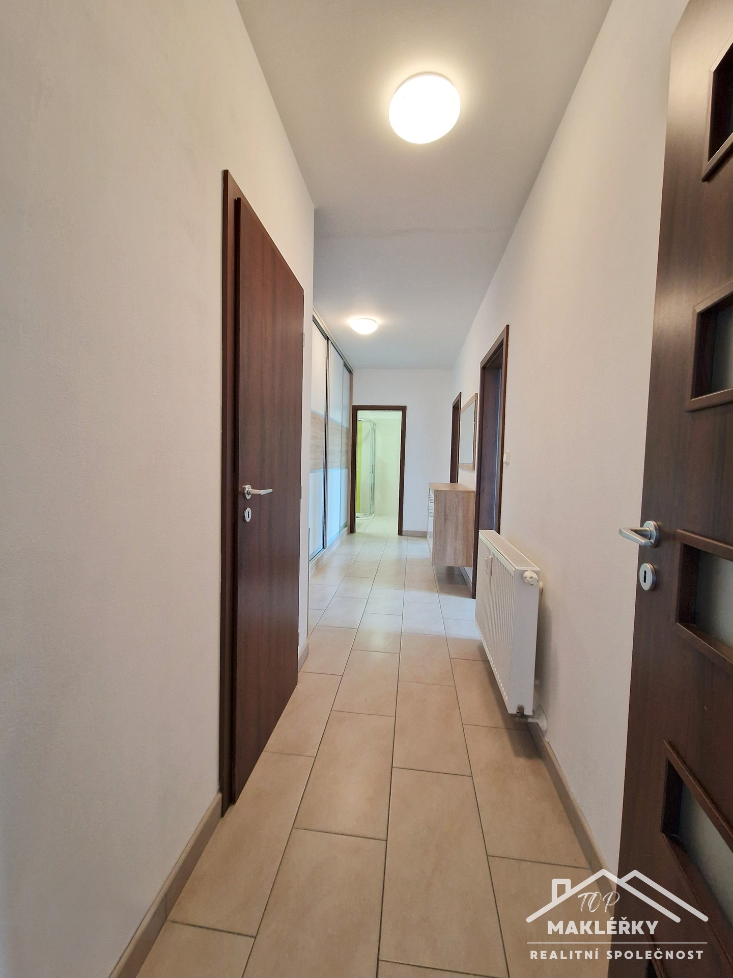 Nabízím Vám hezký, prostorný byt k pronájmu o dispozici 3+KK (92 m2) s lodžií ( 8,70 m2), sklepní kójí ( 1,40m2) s vlastním parkovacím místem v obci Pečky, ulice V Kaštánkách. ( VOLNÝ OD 1.3.2026). Bytová jednotka je zařízena kuchyňskou linkou s kameninovým dřezem, elektrickou- indukční deskou, pečící troubou, mikrovlnou troubou, myčkou, ledničkou. Dále v prostorné chodbě se nachází vestavěná skříň, komoda, botník, věšák a zrcadlo. Druhá vestavěná skříň je k dispozici v jednom pokoji. Dispozice bytové jednotky: jedná se o tři neprůchozí pokoje. Obývací pokoj (35.10m2) společně s kuchyňským koutem, kde se také nachází spíž ( 1,90m2), lodžie .Prostorná chodba (12.30m2) z které se vchází do dalších dvou pokojů ( 18,10m2 a 18,20m2),koupelna se sprchovým koutem (4,80m2), samostatná toaleta ( 1,60m2). Byt je situovaný v prvním patře (poslední patro) z celkových dvou nadzemních podlaží (přízemí a první patro) zděného domu bez výtahu. V bytovém domě lze využít kolárnu. Parkování je možné přímo před domem: jedno vlastní parkovací místo. Internet je možný přes kabelovou přípojku (300/100 Mbit). Energetická náročnost domu, tzv. PENB , momentálně není zhotoven. Uvádíme dle zákona třídu G. Měsíční nájemné 21.000,-Kč + záloha na poplatky ve výši: 2.600,-Kč , elektřinu - zálohu si převede na sebe sám nájemník. Kauce ve výši dvou měsíčních nájmů( 42.000,-Kč), provize RK jedno nájemné ( 21.000,-Kč) Ihned volné k nastěhování. Výborná dopravní dostupnost do Kolína vlakem cca 16 - 19 minut, do Prahy cca 38 - 40 minut ( interval po 1/2 h.) Z Peček jezdí spěšné vlaky do Prahy, a to na trati 011, která je součástí systému PID. V pracovní dny jezdí spěšné vlaky ve špičkách v intervalu zhruba 30 minut. Tato vlaková doprava je klíčová pro cestování z Peček do Prahy, zejména pro dojíždění do zaměstnání. Veškerá občanská vybavenost: škola, školka, pošta, supermarkety, obchody, kavárna. Ráda Vás provedu prohlídkou a sdělím více informací.