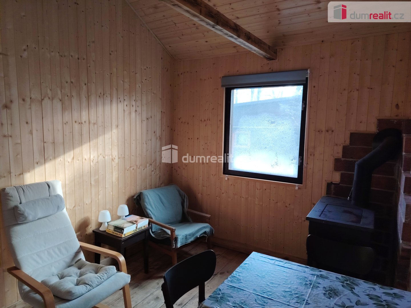 Dumrealit.cz Vám zprostředkuje ve výhradním zastoupení jedinečnou koupi stavby pro rodinnou rekreaci s číslem evidenčním, která je součástí lesního pozemku, nacházejícího se ve vyhledávané oblasti Máchova jezera, v Doksech u České Lípy. Byla využívána ke krátkodobým pronájmům (od dubna do října), nebo k rekreaci majitelů. Tento dvoupodlažní dřevěný objekt má celkovou výměru 35m2. Cca před čtyřmi lety prošla chata značnou rekonstrukcí ( zateplení skelnou vatou + parotěsná folie + dřevěné obložení, dřevěné podlahy, sprchový kout, WC - kompostovací - ekologické, nová krbová kamna + komín), ohřev vody pomocí bojleru. Dispozice: I.NP - kuchyň, obývací pokoj, ložnice, II.NP - malá půda. Do chaty je zavedena el.energie, taktéž je chata napojena na vodovodní řád. K objektu náleží spoluvlastnický podíl na oploceném pozemku s celkovou výměrou 3 062m2, o velikosti 1/5. Vzhledem k umístění chaty, cca 150 m od břehu Máchova jezera a dobrému stavu, v oploceném areálu, kde se nachází další 4 chaty, je objekt vhodný pro rodiny s dětmi. Mohu její koupi vřele doporučit. Více info. v RK. Ev. číslo: 633926. Energetický štítek: G