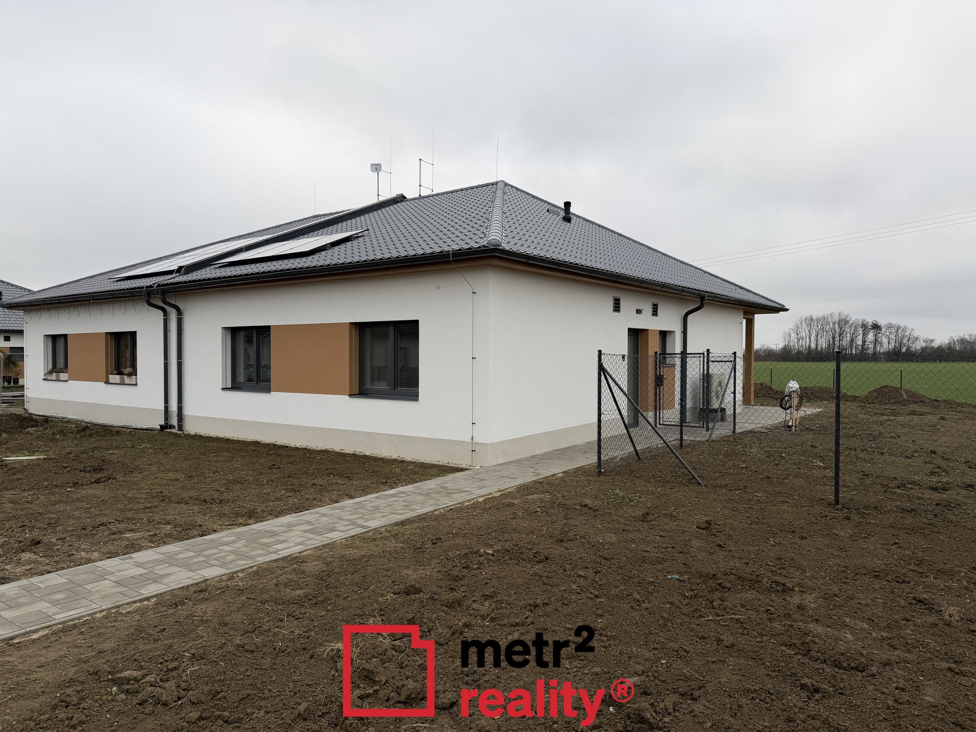 Nabízíme Vám k pronájmu moderní novostavbu zděného přízemního pasivního rodinného domu v obci Hnojice. Dispozice domu je 4+kk s celkovou užitnou plochou 97 m2 a pozemkem o celkové výměře 633 m2. Dům v řadové zástavbě je nepodsklepený. vytápění je řešeno pomocí teplovodního systému, který obsahuje tepelné čerpadlo typu vzduch-voda, které zajišťuje pokrytí tepelných ztrát objektu. Součástí tepelného čerpadla je i zásobník na TUV. Ve všech místnostech RD je podlahové vytápění, které je v koupelně doplněno o topný žebřík. Součástí systému je také centrální rekuperační jednotka, jež zajišťuje přívod čerstvého vzduchu do obytných místností a odvod znehodnoceného (odpadního) vzduchu z koupelny, WC a kuchyně. FVE elektrárna, 3 panely na střeše, jednofázový střídač. Na zahradě je umístěna retenční podzemní nádrž pro sběr a následné využití dešťové vody s kapacitou 8 m3. Dešťová voda je využita na splachování WC a zálivku zahrady. Dům je napojen na vodu z lokálního zdroje, kanalizace je svedena do odpadní jímky. Komfortní parkování pro dvě vozidla před domem. Cena 30.000 Kč měsíčně je uvedena bez inkasa. Dům je volný ihned. PENB skupiny A. Obec Hnojice se nachází 15 km severně od Olomouce, 6 km západně od Šternberka, s velmi dobrou dopravní dostupností do obou měst. Svou polohou je obec přímo předurčena být zastávkou především pro cykloturisty, kteří projíždějí z Olomouce či Litovle směrem na Šternberk do pohoří Nízkého Jeseníku, nebo naopak směřují od Šternberka na cyklostezku vedoucí přes CHKO Litovelské Pomoraví. Každý z cykloturistů se v naší obci může zastavit a občerstvit v restauraci či v nekuřácké vinárně, které samozřejmě nabízejí i venkovní posezení.