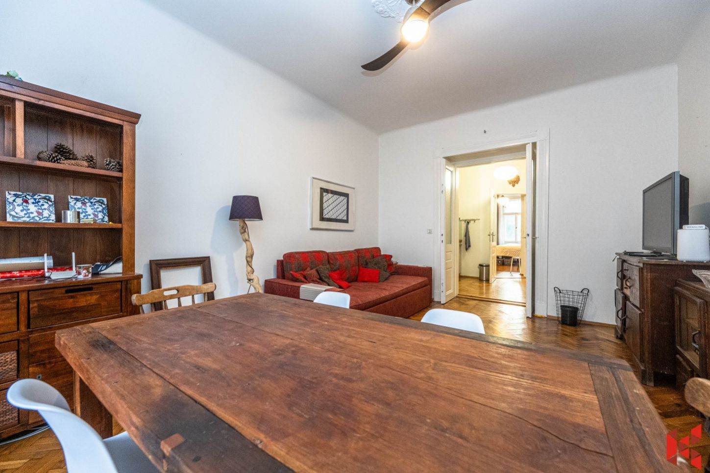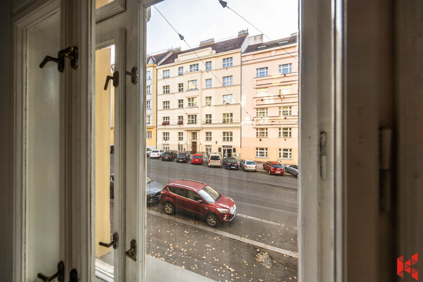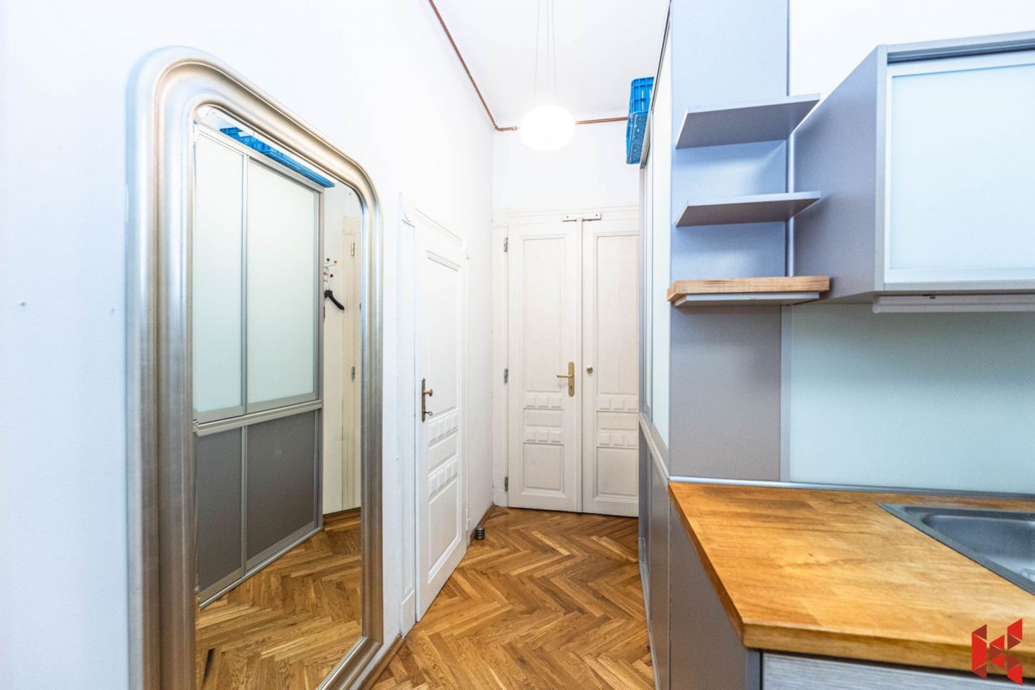 Dlouhodobý pronájem bytu 2+1, 74 m2 + lodžie 2 m2, 4. patro cihlového domu s výtahem, ul. Parléřova. Předsíň 14,35 m2, obývací pokoj 19,55 m2,…