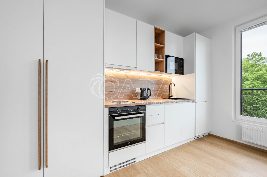 Pronájem vybaveného designového bytu 1kk (28 m2) ve 3. podlaží rezidenčního projektu na Proseku. Skvělá lokalita v širším centru metropole nabízí příjemné městské bydlení se všemi službami v bezprostřední blízkosti. Dispozice bytu zahrnuje vstupní chodbu, obývací prostor s kuchyní a postelí, koupelna se sprchovým koutem a toaletou. K bytu je možné navíc pronajmout garážové stání v podzemních podlažích a sklep. Byt ve vysokém standardu je pronajímán kompletně vybavený. Kuchyňská linka s vestavěnými spotřebiči (indukční varná deska, horkovzdušná trouba, mikrovlnná trouba, digestoř, lednice, mrazák, myčka), jídelní stůl s židlemi, sedačka, TV, skříňky a police; postel s matracemi, prostorná skříň, noční stolky; pračka a sušička, v chodbě botník a skříně. Jedinečné nadstandardní bydlení ve vyhledávané lokalitě s výbornou dopravní dostupností, s plnou občanskou vybaveností. V těsné blízkosti supermarket Billa a další obchody, hobbymarket, Park Přátelství na dohled z okna, blízké cyklostezky, Prosecké skály, sportoviště, ZŠ, MŠ. Výhodou je blízké napojení na výpadovku z Prahy. Fotografie jsou ilustrační nemusí odpovídat konkrétní bytové jednotce. K dispozici od 09.02.2026 Dostupnost: Metro Prosek (1 min), Bus Prosek (1min) Poplatky: cca 2.641,00 Kč (el. energie, vytápění, vodné/stočné, úklid domu, výtah, odpadky, internet, rozhlas+TV) Kauce: 37.000 Kč, provize 1x nájemné Energetická náročnost budovy: B - úsporná