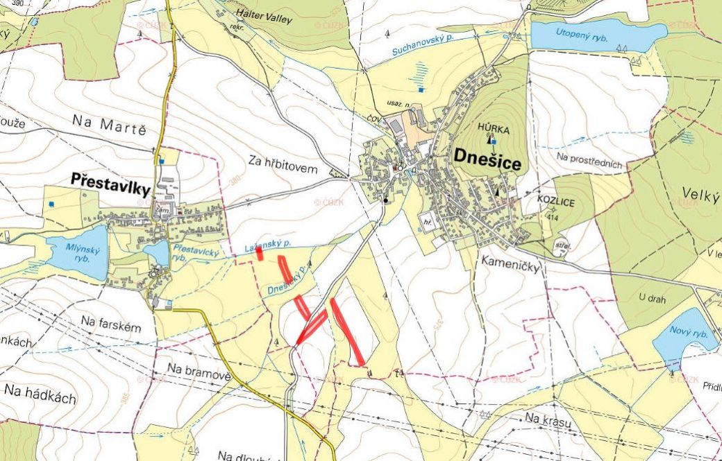 Nabízím k prodeji soubor zemědělských pozemků ve výlučném vlastnictví, nacházejících se v katastrálním území Dnešice, okres Plzeň-jih. Pozemky jsou zapsány na listu vlastnictví č. 402 a tvoří je následující parcely: parc. č. 90/21 trvalý travní porost (647 m) parc. č. 90/41 trvalý travní porost (152 m) parc. č. 123 orná půda (3 751 m) parc. č. 163 trvalý travní porost (4 089 m) parc. č. 1031 orná půda (7 240 m) parc. č. 1036/13 orná půda (6 762 m) parc. č. 1070/23 ostatní plocha (118 m) parc. č. 1129/8 vodní plocha (89 m) Celková výměra všech pozemků činí 22 848 m. Přidejte se k MojePole Plus a získejte výhodné nabídky přímo do své schránky. Nezávaznou poptávku můžete vyplnit prostřednictvím našich stránek. V případě zájmu mě neváhejte kontaktovat telefonicky nebo e-mailem. V uvedené ceně je již zahrnuta provize. Zajišťujeme vzorové smlouvy i související právní služby. Majitel si vyhrazuje právo vybrat kupujícího na základě nabídky.