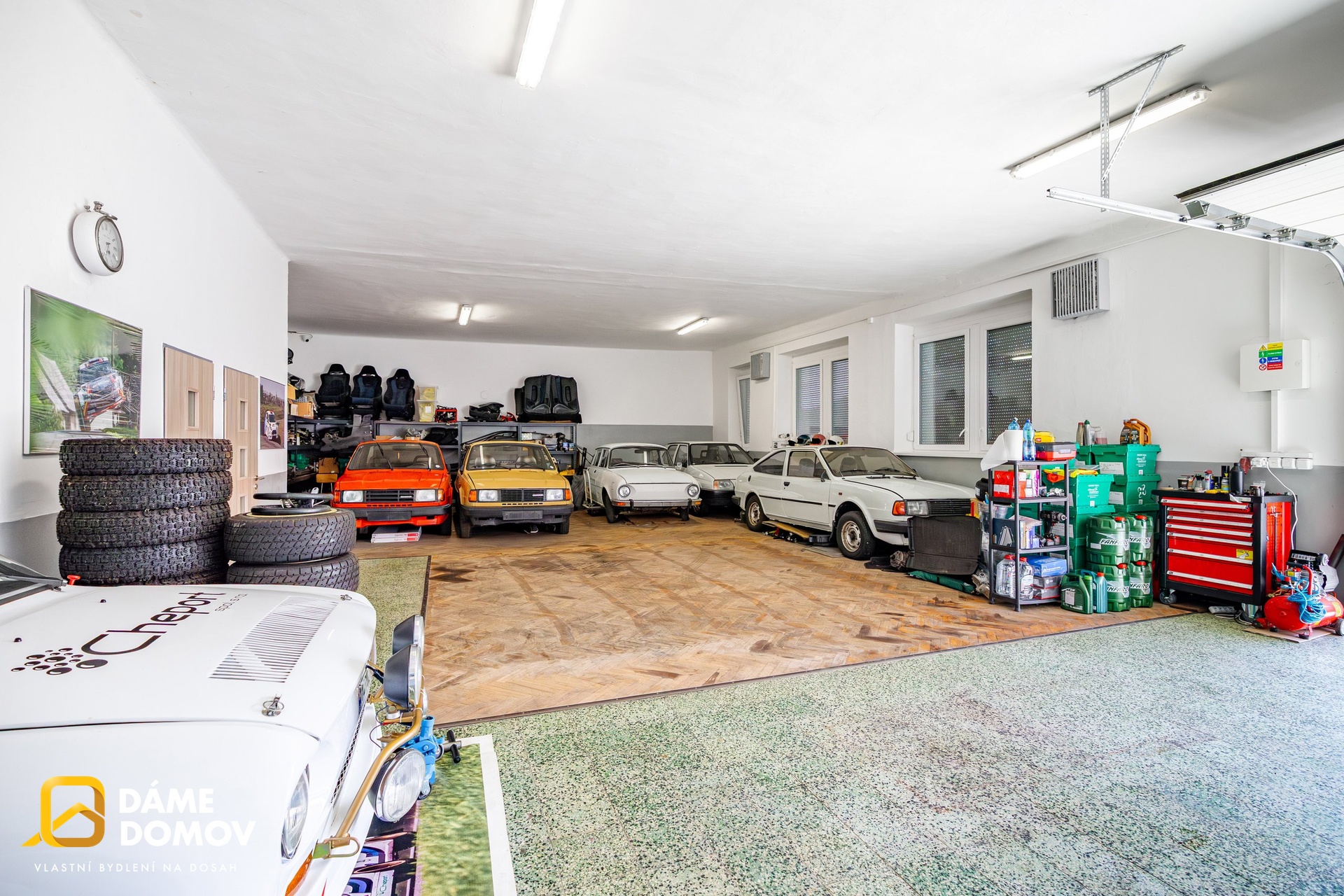 V obci Bělov, opravdu pár minut od Otrokovic, nabízíme k prodeji zajímavý objekt s bohatou historií - bývalou Bělovskou hospodu, dnes upravenou na dům s prostory pro uskladnění aut, nebo motorek a se zázemím. Nemovitost je v dobrém technickém stavu a je napojena na elektřinu, obecní vodovod i kanalizaci. Dominantou je hlavní místnost - „sál“ - s vjezdem přes elektricky ovládaná vrata kde uskladníte až 15 aut nebo mnoho motocyklů. Dále je zde kancelář, kuchyňka, sociální zázemí (toalety, sprcha) a sklep. Bočním průchodem se dostanete na zadní dvorek, včetně úložného prostoru a vstupu na půdu, která nabízí možnost rozšíření obytné či užitné části. Současné využití objektu je ideální pro sběratele, nadšence do automobilů a motorek, nebo pro více vlastníků, kteří potřebují bezpečné a kryté parkování. Díky dispozici a poloze se po jednoduché úpravě nabízí i široké spektrum dalších možností pro Vaše potřeby. Rodinný dům pro bydlení, nebo pronájem, kombinace bydlení a podnikání, dílna, sklad, případně jiné činnosti pro veřejnost, nebo svou potřebu. Bělov má základní občanskou vybavenost a výborné spojení - do Otrokovic pár minut, do Zlína cca 15 minut, rychlý nájezd na dálnici D55 směr Uherské Hradiště či Brno. Okolní příroda je ideální pro procházky a cyklovýlety. Pokud Vás tato nabídka zaujala, neváhejte nás kontaktovat pro bližší informace k objektu, nebo domluvení prohlídky.