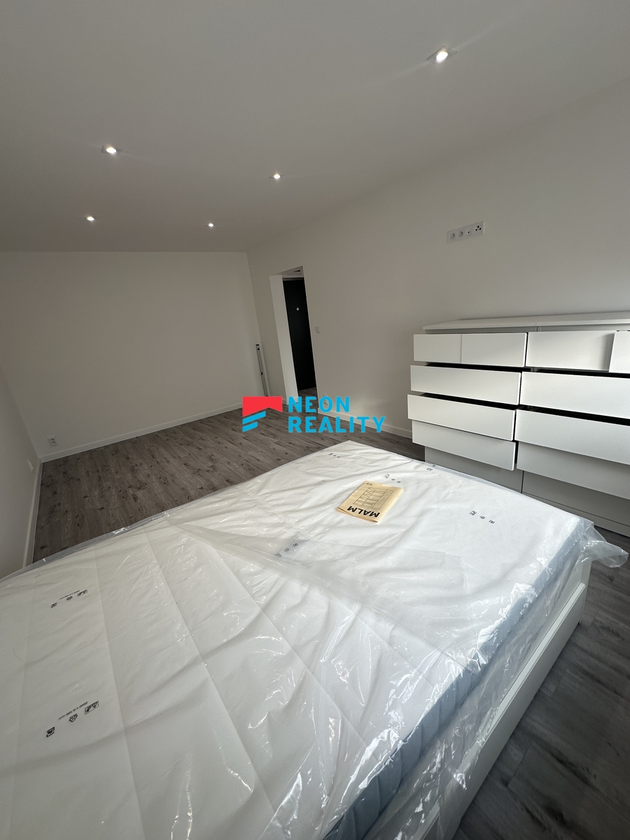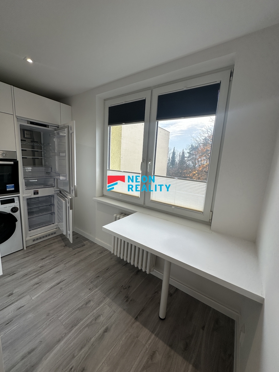 Nabízíme k pronájmu zcela nový, kompletně zrekonstruovaný byt 1+1 o velikosti 37,4 m2 ve 3. patře domu na ulici Otakara Jeremiáše v Ostravě - Porubě. Lokalita patří mezi nejžádanější v Ostravě - klid, zeleň, parky, MHD i Globus máte doslova pár minut od domu. Byt je po dokončené rekonstrukci a dosud v něm nikdo nebydlel. Vše je nové, čisté a připravené k okamžitému nastěhování. Moderní kuchyň na míru v elegantní kombinaci bílé a černé je vybavena vestavnými spotřebiči BEKO včetně myčky, indukce, trouby, lednice i pračky se sušičkou. Nechybí dostatek úložného prostoru a na míru připravená jídlení stůl. V celém bytě jsou rolety den-noc na míru. Koupelna působí nadčasově a luxusně díky kombinaci antracitových a světlých obkladů, sprchovému koutu se skleněnou zástěnou a modernímu vybavení. Hlavní pokoj je světlý, prostorný a částečně zařízený - nová postel s úložným prostorem a komoda. Byt má nízké měsíční náklady a je ideální pro jednotlivce nebo pár, kteří hledají nové, stylové a bezstarostné bydlení v top lokalitě. Volné ihned.