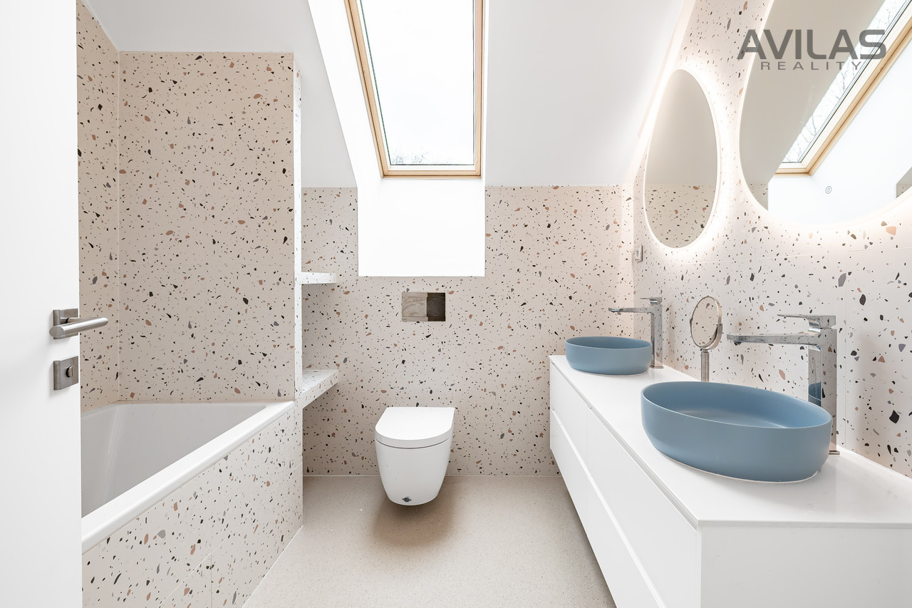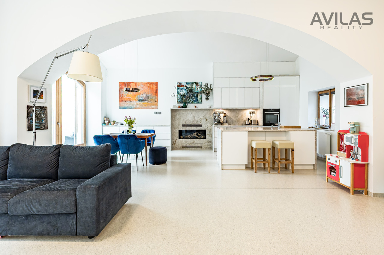 Nabízíme k prodeji jedinečný byt o dispozici 4+kk a podlahové ploše 213 m2, který se nachází v barokní budově v prestižní části pražských Vokovic. Tato exkluzivní nemovitost s vlastní předzahrádkou je součástí historického areálu obklopeného památkově chráněnou zdí, která zajišťuje naprosté soukromí a klid. Dispozice bytu: Přízemí: 112m2 : vstupní hala, obývací pokoj s kuchyní, samostatné WC 1.patro: 101m2 : chodba, pokoj, pokoj, koupelna se sprchovým koutem a WC, ložnice, koupelna s vanou a WC, technická místnost, kumbál. Součástí prodeje jsou tři podzemní parkovací stání a sklep o velikosti 6,3 m2. Bezpečí a komfort v privátním komplexu. Areál s historií sahající až do 15. století nabízí upravený park plný zeleně, 24hodinovou recepci a kamerový systém, který zajišťuje maximální bezpečnost a soukromí. Výborná dostupnost a občanská vybavenost Zastávky MHD a metro A - Nádraží Veleslavín v docházkové vzdálenosti Centrum Prahy do 20 minut autem, letiště Václava Havla do 10 minut Veškerá občanská vybavenost: školy, školky (včetně Prague British International School), restaurace, obchody, lékařské ordinace Blízkost přírodních lokalit: Divoká Šárka, vodní nádrž Džbán, Obora Hvězda Tento dům představuje ideální kombinaci historického kouzla, moderního komfortu a výjimečné lokality. Pro více informací a prohlídku nás neváhejte kontaktovat!