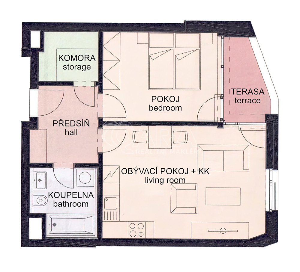 Nabízím k dlouhodobému pronájmu byt 2+kk o velikosti 52,4 m2 s terasou (4 m2). Byt je plně vybavený (viz foto). V koupelně se nachází vana a pračka se sušičkou (2 v 1). Součástí bytu je také praktická komora, která poskytuje další úložný prostor. K bytu náleží také sklepní kóje. Na oknech jsou instalovány venkovní žaluzie pro pohodlnou regulaci světla. Byt se nachází v 6. nadzemním podlaží novostavby v projektu Byty u parku Na Vackově, přímo u parku Židovské pece. Ve vzdálenosti cca 600 m je tramvajová zastávka Strážní, v blízkosti také zastávka Vozovna Žižkov. V docházkové vzdálenosti se nachází také autobusové zastávky s přímým spojením na stanice metra Florenc a Želivského, stejně jako supermarket Albert a drogerie Rossmann. Poplatky spojené s užíváním bytu činí 4.500 Kč + 1.400 Kč elektřina (poplatky jsou hrazeny formou měsíčních záloh, s následným ročním vyúčtováním skutečných nákladů). K bytu je možné pronajmout také parkovací stání za poplatek 2 000 Kč měsíčně. Kauce: 37 500 Kč Provize RK: 28 500 Kč K nastěhování ihned.