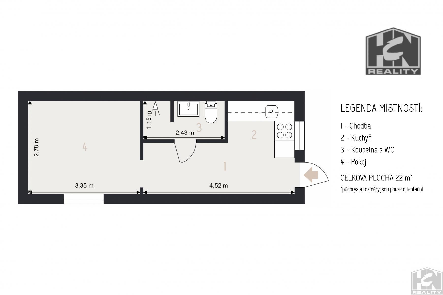 Pronájem byt 1+1 (22 m2), OV, Jablonec n.N., ul. Vlaštovčí, Jablonec nad Nisou