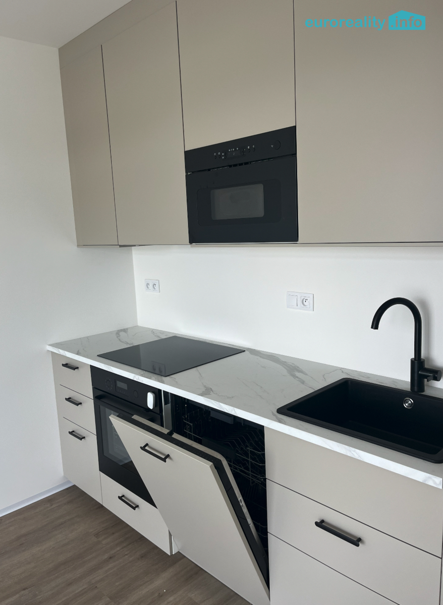 Pronájem nového bytu 2+kk a šatnou v pátém patře novostavby a se dvěma balkóny a komorou( sklepem) na patře. V bytě je nová kuchyňská linka včetně všech spotřebičů, nové podlahy, koupelna. Lze pronajmout garážové stání za 1 500,- Kč / měsíčně. K nájmu se hradí zálohy na služby cca ve výši 4.000,- Kč, elektroměr se přepíše na nájemce. Při podpisu nájemní smlouvy celkem čtyři nájmy předem, (nájem, dvě kauce, provize). Byt je ihned k dispozici.