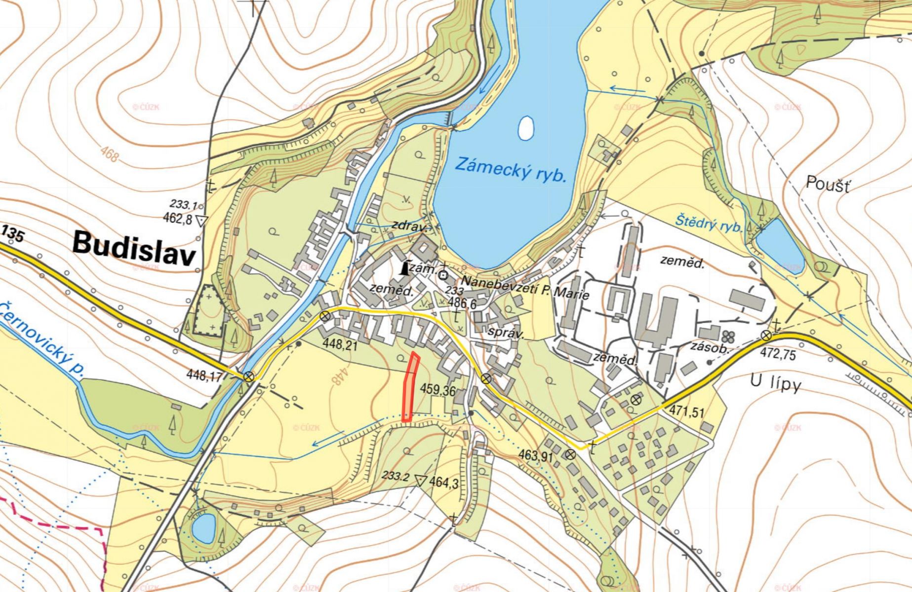 Stavební pozemek pro rodinný dům Základní informace k nabídce: -> prodej do výlučného vlastnictví bez spoluvlastníků -> parcela určena pro výstavbu nízkopodlažního rodinného domu -> autobusové spojení na Tábor / Soběslav Nabízím k prodeji pozemek ležící ve stavební ploše města Budislav v okrese Tábor. Pozemek rozšiřuje dosavadní jižní zástavbu a je zapsán na listu vlastnictví č. 329 pod parcelním číslem 66. Pozemek č. 66 je součástí stavební plochy smíšené obytné. Umožňuje výstavbu nízkopodlažních rodinných domů, řadových či rekreačních domů. Malá část pozemku je určena pro vodní plochu. V obci jsou potraviny, hostinec a původně barokní zámek sloužící jako domov pro seniory. Dalším nejbližším občansky vybaveným městem jsou Tučapy. Autobusovým spojením se lze pohodlně dostat do Tábora nebo Soběslavi. Zastupuji v prodeji přímého vlastníka. Neváhejte mne kontaktovat s dotazy nebo zájmem o koupi. Cena je uvedena včetně DPH a provize. Majitel si vyhrazuje vybrat kupujícího na základě nabídky.