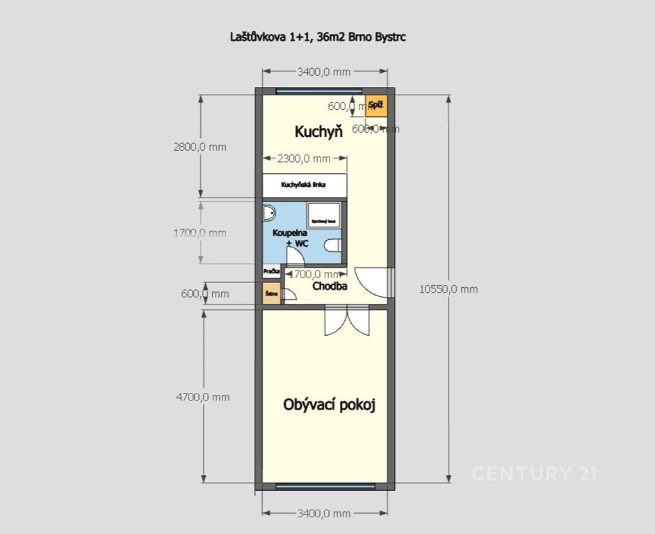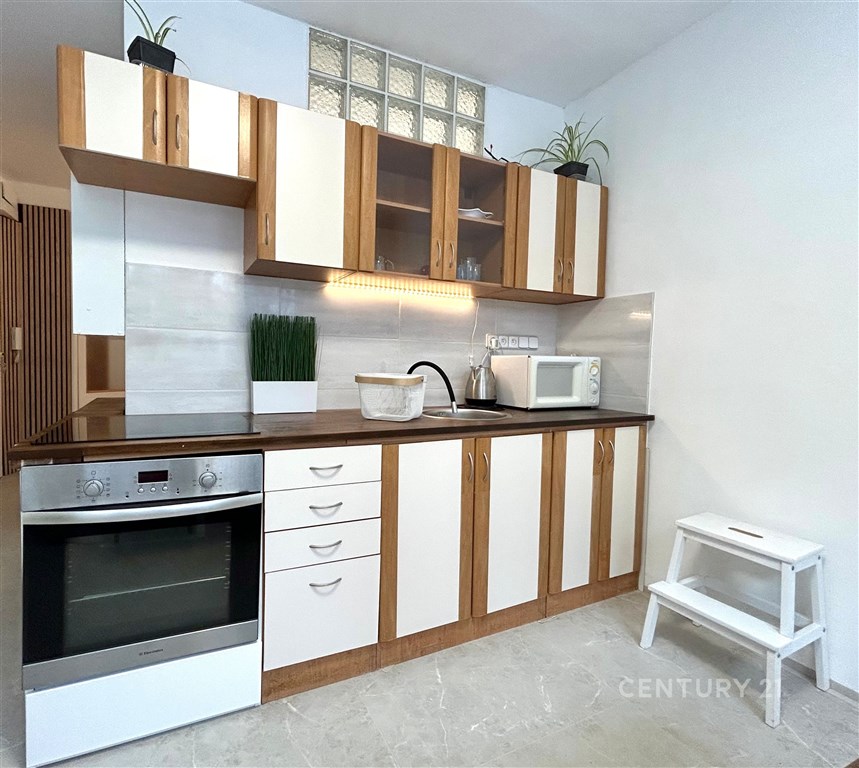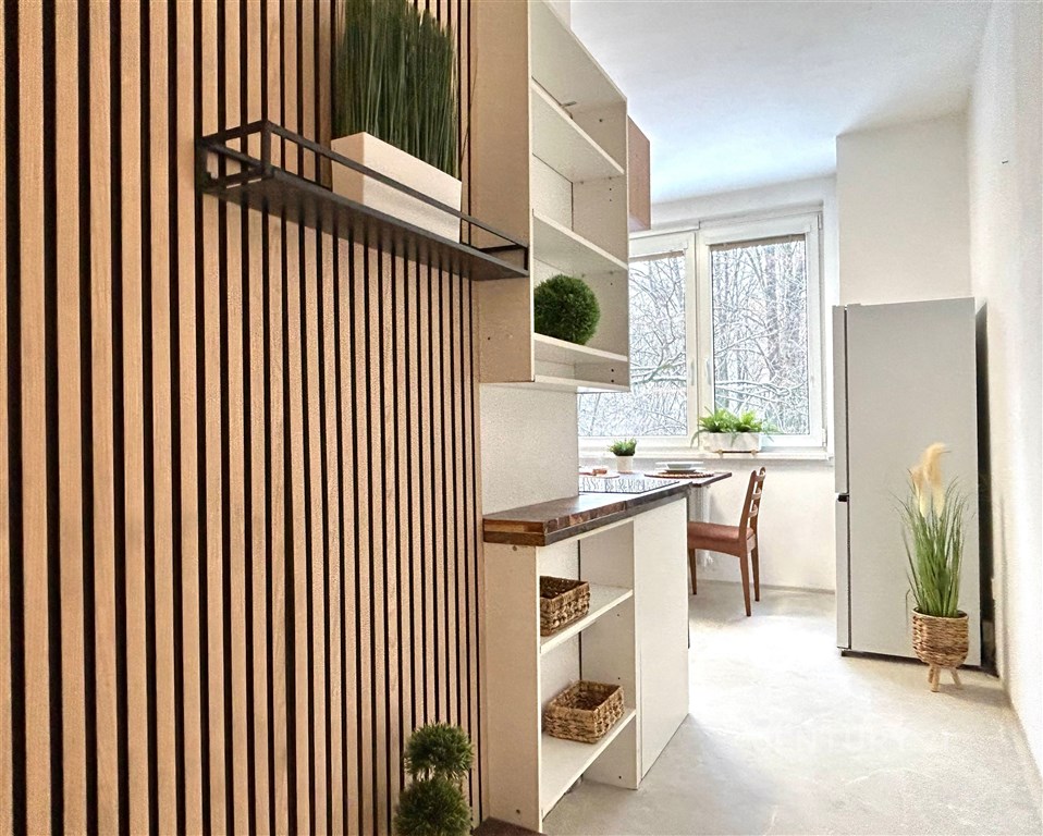 Ve výhradním zastoupení Vám nabízíme k pronájmu nově zrekonstruovaný byt o dispozici 1+1 v klidné lokalitě Brno - Bystrc, na ulici Laštůvkova. Tento byt má užitnou plochu 36 m2, nachází se v 2. NP, bez výtahu, je částečně zařízený. Celková plocha bytu zahrnuje kuchyň (12 m2) vybavenou linkou se spotřebiči (elektrická trouba s indukční deskou, digestoř, lednice, mikrovlnná trouba), obývací pokoj (16 m2), koupelnu (4 m2) se sprchovým koutem a toaletou, pračkou a předsíň (4 m2) s vestavěnou úložnou skříní. Možnost připojení k internetu. Nájemné/měsíc: 11 500 Kč + zálohy na služby 5 000 Kč (energie, voda, teplo, úklid). Vratná jistina: 16 500 Kč. V okolí domu je veškerá občanská vybavenost, zastávka MHD u domu. Byt je volný od března 2026!