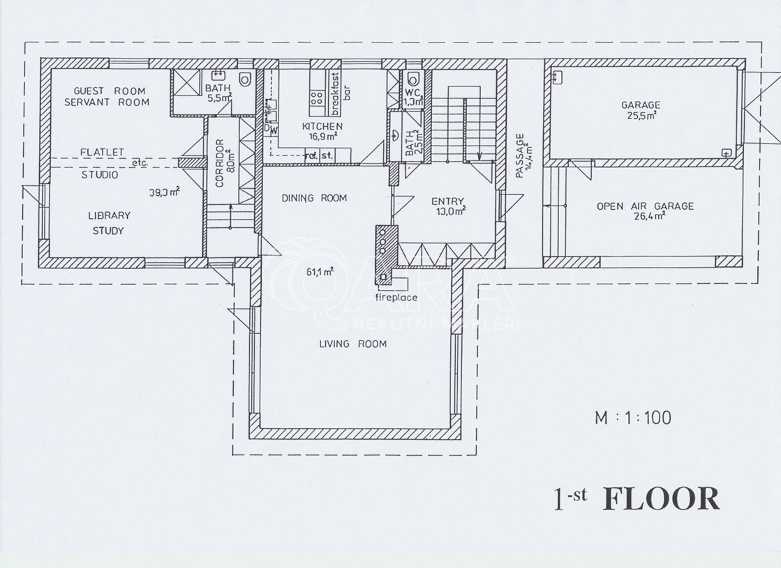 Nabízíme k pronájmu exkluzivní rodinný dům vhodný i pro kancelářské využití v pražských Kunraticích v místě obklopeném zelení, nedaleko lesoparku Kunratický les a necelé dva kilometry jízdy autem od nákupního centra Westfield Chodov, v jehož blízkosti je stanice metra a kancelářský komplex The Park. V lokalitě je velmi dobře dostupná veškerá občanská vybavenost včetně lékařské péče a vzdělávání. Dobře dostupná je například i Prague British International School. Samotný dům má zastavěnou plochu 264 m2, podlahovou plochu 417 m2, dvě garážová stání a rovinatou zahradu s velikostí 1000 m2. Vnitřní dispozice domu jsou 6+1. Největší je obývací pokoj s krbem a vysokým stropem, je k dispozici i čtveřice koupelen. Firma zde může najít klidné zázemí naprosto odlišné od klasických kancelářských budov. Neváhejte, ozvěte se a rádi zorganizujeme prohlídku. Kromě inzerovaného nájmu (pronajímatel je fyzická osoba, takže se neplatí DPH), je nutné počítat s úhradou spotřeby energií, vody a odvozu domovního odpadu.