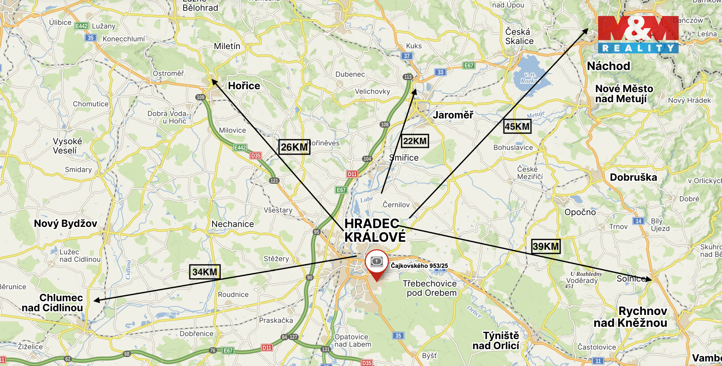 K pronájmu byt 1+1 o užitné ploše 43 m2 na Novým Hradci blízkosti nákupních center do centra Hradce Králové se pohodlně dostanete MHD. Byt se nachází ve 3. patře budovy a je připraven k okamžitému nastěhování. Zároveň součástí pronájmu jsou společné prostory a sklepní kóje. Vše se nachází v atraktivní lokalitě s velmi bohatou občanskou vybaveností. Pokud hledáte pohodlné bydlení blízko centra města, neváhejte nás kontaktovat pro více informací nebo domluvení osobní prohlídky. Rezervujte čas prohlídek po telefonu s makléřem.