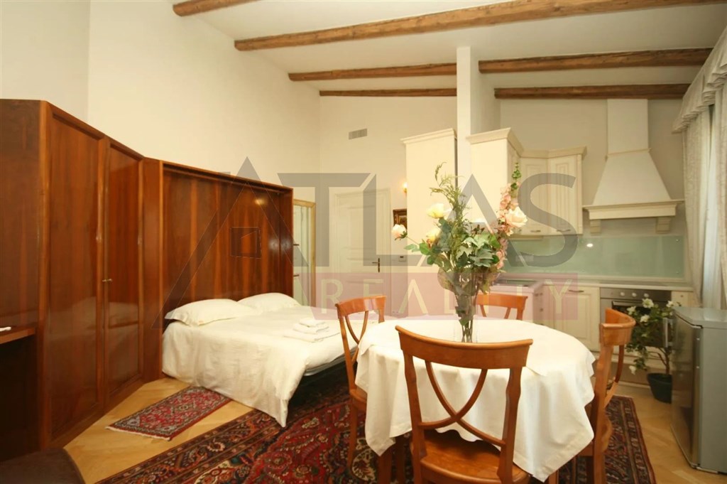 Pronájem kompletně zařízeného luxusní garsonky 38 m2 ve 4. patře s výtahem v prestižním klasickém secesním domě s vysokými stropy a originální výzdobou po kompletní rekonstrukci, která proběhla v roce 2006. Dům se nachází v residenční oblasti historického centra Prahy, jen 200 m od parku Riegrovy sady, 300 m od stanice metra trasy "A" Náměstí Míru sady a 500 m od Václavského náměstí stanice metra Muzeum trasy A a C a nákupního a kulturního centra Prahy. Byt je kompletně zařízen pseudostarožitným italským nábytkem. Ve spodním patře je obývací pokoj 28 m2, s kuchyňským koutem vybaveným lednicí s mrazákem, myčkou, plynovým sporákem, digestoří, koupelna s umyvadlem, rohovou vanou, WC a bidetem, byt má terasu 4 m2 se vstupem z pokoje. Byt má telefonní linku, rychlý internet, TV, satelit, na podlahách parkety a dlažba, při rekonstrukci byly použity nadstandardní materiály. V domě jsou vybudovány podzemní garáže, výtah, na dvoře domu je velký bazén 8 x 11 m hluboký 1,2 metru s hydromasážním koutem, obklopený terasou a zelení. V domě je také kamerový systém, ostraha a správce. Garážové stání za poplatek, ostraha a pouzivani bazenu v ceně. Poplatky četně energií cca 450 EUR. Volné od 1.4.2026