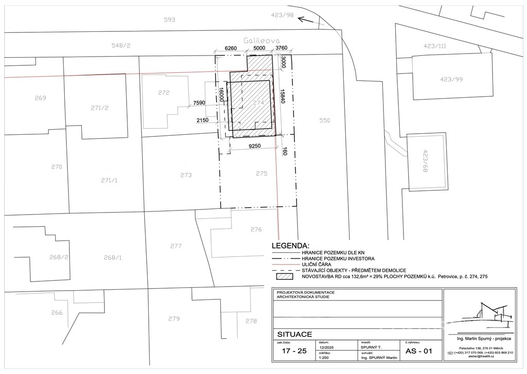 Nabízíme k prodeji atraktivní pozemek se stávajícím rodinným domem 3+1 v ulici Galvaniho v klidné části Prahy - Petrovice. Nemovitost představuje výbornou příležitost pro ty, kteří hledají místo s potenciálem vytvořit si bydlení přesně podle svých představ - ať už formou kompletní rekonstrukce stávajícího domu, nebo demolicí a výstavbou zcela nového rodinného domu. Celková plocha pozemku činí 453 m2. Dům je napojen na veškeré inženýrské sítě, přičemž elektřina a plyn jsou v současnosti odpojeny. K dispozici je také návrh nového domu s dispozicí 5+kk s garáží a celkovou užitnou plochou 156,3 m2. Užitnou plochu je možné dále navýšit dle zvoleného řešení. Lokalita zaujme především kombinací klidného rezidenčního prostředí a velmi dobré dopravní dostupnosti. Autobusem 125 se z nedaleké zastávky (cca 350 m) dostanete přibližně za 13 minut na metro Háje. V opačném směru dojedete na metro Skalka ze zastávky vzdálené cca 250 m zhruba za 24 minut. K dispozici je také autobus 240 na metro Černý Most, kam se ze zastávky vzdálené cca 250 m dostanete přibližně za 35 minut. V bezprostředním okolí naleznete kompletní občanskou vybavenost - místní úřady, školku, školu včetně anglické školy, poštu, restaurace, sportovní hřiště i další služby. Nákupní a volnočasové možnosti jsou rovněž na dosah, například supermarket Albert přibližně 5 minut od domu či fitness s provozem 24/7. Nemovitost je možné financovat hypotečním úvěrem. Tento dům je ideální volbou pro rodiny, které hledají klidné bydlení v rámci Prahy, a současně chtějí mít rychlý a pohodlný přístup do centra města. Díky své lokalitě a výraznému potenciálu nabízí mimořádně zajímavou investiční příležitost. Domluvte si prohlídku ještě dnes a přijďte se osobně přesvědčit o kvalitách této nabídky.