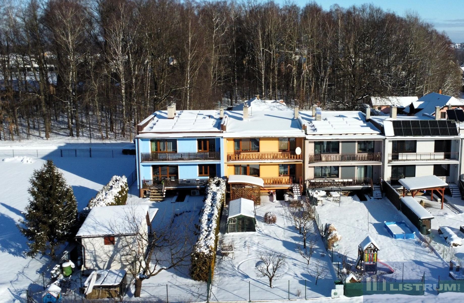 Nabízíme k prodeji řadový (krajní) rodinný dům o dispozici 6+1 v obci Lučina u Žermanické přehrady. Dům byl postaven na konci 80-tých let. Celková obytná plocha činí cca. 180 m a užitná plocha činí cca. 270 m včetně sklepu a dvojgaráže. Pozemek má celkovou výměru 489 m a stojí na něm stavba RD, stavba hospodářské budovy a bazén. V roce 2012 provedena nová střešní krytina, plovoucí podlahy, schodiště, kuchyňská linka, světla LED, elektřina do mědi. V roce 2023 instalace FVE a tepelné čerpadlo k bazénu. Dům je dvoupodlažní, podsklepený, přičemž 1. NP je tvořeno obývacím pokojem propojeným s kuchyní a vstupem na lodžii a dále na zahradu, 2 x ložnicí (každá z nich má východ na lodžii), WC, zádveřím a chodbou. 2. NP je tvořeno 3 x pokojem (každý z nich mají východ na lodžii), koupelnou se sprchovým koutem, vanou a dvojumyvadlem, samostatným WC a šatnou. Sklep je tvořen dvojgaráží s vraty na DO, kotelnou, skladem, saunou se sprchou a sušárnou. Dům je cihlový, zateplený fasádním polystyrenem 10 cm, okna plastová s izolačním 2-sklem,. Na střeše je instalována FVE o výkonu 6,7 kWp s bateriovým úložištěm o kapacitě 10 kWh. Vytápění domu je řešeno plynovým kotlem napojeným na ústřední topení. Ohřev TUV dvěma bojlery, jeden napojen na ústřední topení a druhý elektrický, který využívá energii z FVE. Dům je napojen na elektřinu, plyn, vodovod a kanalizaci. Na zahradě instalován zapuštěný bazén s technologií umístěnou ve sklepě domu, zahradní domek s místem pro uskladnění a krytým posezením a vyhřívaná vířivka pro 5 osob. Dům je umístěn na okraji středu obce s krásným a přímým výhledem na Lysou Horu a panorama Beskyd. Vynikající dopravní dostupnost na dálnici D48 (5km), do Havířova (10km), do FM (12km), do OV (29km), BUS (500m), střed obce s občanskou vybaveností (ZŠ, MŠ, lékaři) 500 m. Vynikající a žádaná lokalita pro bydlení.