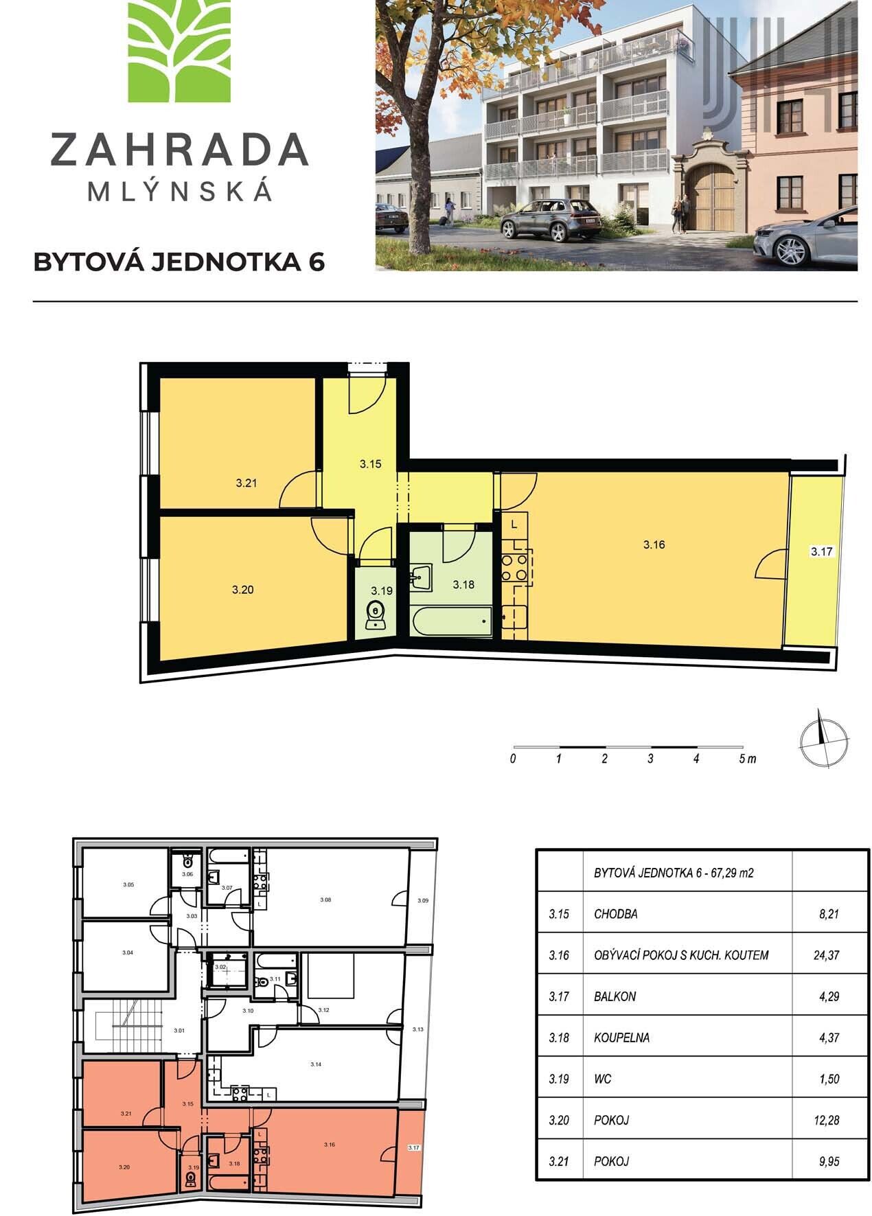 Nabízíme k prodeji byty v nově realizovaném projektu "zahrada Mlýnská“. V probíhající výstavbě bytového domu v Prostějově na ulici Mlýnská Vám nabízíme byty vel. 3+kk, o celkové podlahové ploše 67 - 87 m2, umístěné ve 1. - 3. patře cihlového bytového domu s výtahem. Byty jsou orientované na východní a západní stranu a součástí bytů je balkon. Možnost koupě garáže v přízemí domu za cenu 670.000 Kč, která poskytuje i úložný prostor, díky délce 6 m. Další parkovací plochy jsou k dispozici na dvoře za cenu 189.000 Kč. K bytům bez koupě garáže lze vybrat sklep. Dům se staví v centru města, a přitom je umístěn v zahradě. Bytový dům má centrální plynové vytápění i ohřev teplé vody s měřiči pro každou bytovou jednotku. Samozřejmostí je přípojka optického internetu v každém bytě. Všechny byty splňují náročné protihlukové normy, mají kvalitní výbavu již ve standardu, kvalitní sanitu i obklady. Možnost výběru materiálu a řešení klientských změn během výstavby. V případě zájmu Vám naše kancelář zajistí exkluzivní financování koupě bytu hypotečním úvěrem. Výstavba domu již probíhá a dokončena bude nejpozději v do konce roku 2026. PENB - B.