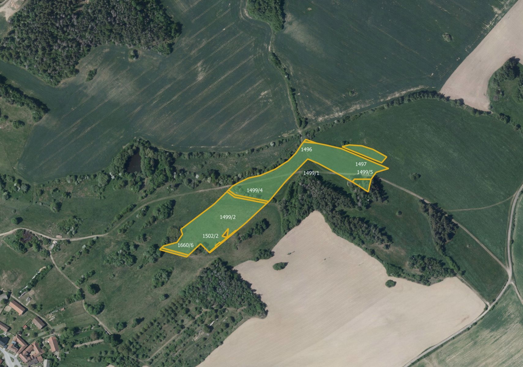Nabízím ke koupi soubor zemědělských pozemků v katastrálním území Hroznatín v okrese Třebíč. Jedná se o prodej 100% vlastnictví. Pozemky jsou vedeny na katastru nemovitostí pod listem vlastnictví 411 a parcelními čísly 1423/3, 1496, 1497, 1499/1, 1499/2, 1499/4, 1499/5, 1502/2, 1627/3 a 1660/6. Celková výměra všech pozemků činí 30 879 m, přičemž celá výměra je předmětem prodeje. Struktura výměry podle druhu pozemků: 28 070 m orné půdy 1 716 m ostatní plochy 1 093 m trvalého travního porostu Tento skvělý kousek zemědělské půdy nabízíme za atraktivní cenu. V té je zahrnuta i provize, což zajišťuje transparentnost a jednoduchost obchodu. Cena půdy v čase roste, s koupí proto dlouho neváhejte. Pozemky prodávám v zastoupení přímého majitele. Pro více informací mne kontaktujte na telefonu nebo e-mailu. Majitel si vyhrazuje právo vybrat kupujícího na základě nabídky.