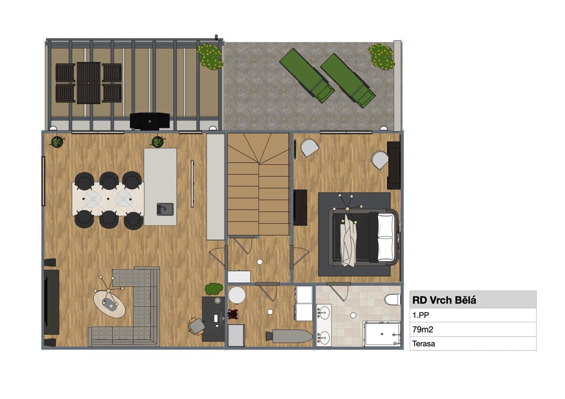 Dům, který dává smysl. Prostor, klid a promyšlený design - takový je projekt "Bydlení Vrchbělá" V jednom z nejúspěšnějších rezidenčních projektů v okolí přichází do prodeje dvojdomek - dva samostatné rodinné domy, navazující na první, již vyprodanou etapu projektu "Bydlení Vrchbělá" v Bělé pod Bezdězem. Projekt nyní zahajuje druhou etapu a potvrzuje, že kvalitní bydlení v klidu, zeleni a s výbornou dostupností má své pevné místo. Pozemek je mírně svažitý a dům je do svahu citlivě zasazen - výsledek je nejen estetický, ale především maximálně praktický. Komfort, který si zamilujete hned první den. Dispozice, která funguje - dům nabízí 174 m2 obestavěnné podlahové plochy, rozdělené do dvou úrovní: Horní podlaží: - sklad na kola - vstupní chodba s možností velkorysých úložných prostor - koupelna s vanou - samostatná toaleta - 3 ložnice / dětské pokoje / pracovna - flexibilita podle vaší životní fáze Dolní podlaží (1. PP - 87 m2): - velkorysý obývací pokoj s přímým vstupem na zahradu - výhled do zeleně, soukromí a klid - kuchyňský kout s možností kuchyňského ostrůvku s dřezem - ložnice se vstupem na terasu - koupelna s WC a sprchou - technická místnost - samostatné WC Celý dům je zděný, zateplený, vybavený tepelným čerpadlem a navržený tak, aby byl energeticky úsporný a dlouhodobě udržitelný. Zahrada, která má smysl - pozemek o velikosti 640 m2 nabízí dostatek prostoru pro relax, rodinu i zeleň. Součástí zahrady je zahradní domek (11 m2) s podzemní nádrží na dešťovou vodu (závlaha 12m3), vše v jednotném designu - žádná náhoda, ale promyšlený celek do posledního detailu. Lokalita - klid, zeleň a dostupnost Vrchbělá je místem, kde bydlení dýchá. Okolní příroda, lesy, minimum ruchu - ideální pro rodiny i pro ty, kteří chtějí po práci skutečně vypnout. Vrchbělá je součástí Bělé pod Bezdězem, obce s veškerou občanskou vybaveností včetně školek a školy. Zároveň jste během krátké chvíle v Mladé Boleslavi, což zajišťuje výbornou dostupnost práce, služeb a zábavy. Pro koho je tento dům? Pro rodinu, která hledá kvalitní, moderní a klidné bydlení. Pro klienty, kteří ocení funkční dispozici, design a promyšlenost. Pro ty, kteří chtějí nový dům bez kompromisů, ale s duší. Dům je kompletně dokončen, zkolaudován a zapsán na KN, po instalaci kuchyňské linky je ihned k nastěhování. Cena a DPH Celková cena: 12.990.000 Kč včetně DPH Rozpis pro smluvní účely: Pozemek: 1.500.000 Kč 1.239.669 Kč bez 21 % DPH Rodinný dům: 11.490.000 Kč 10.258.929 Kč bez 12 % DPH Cena bez DPH celkem: 11.498.598 Kč Pokud hledáte dům, kde je každý detail promyšlený, kde architektura respektuje místo a kde se vám bude skutečně dobře žít, Vrchbělá je přesně to místo. Ráda vás projektem osobně provedu.