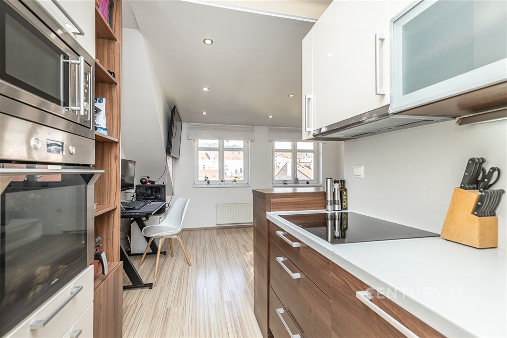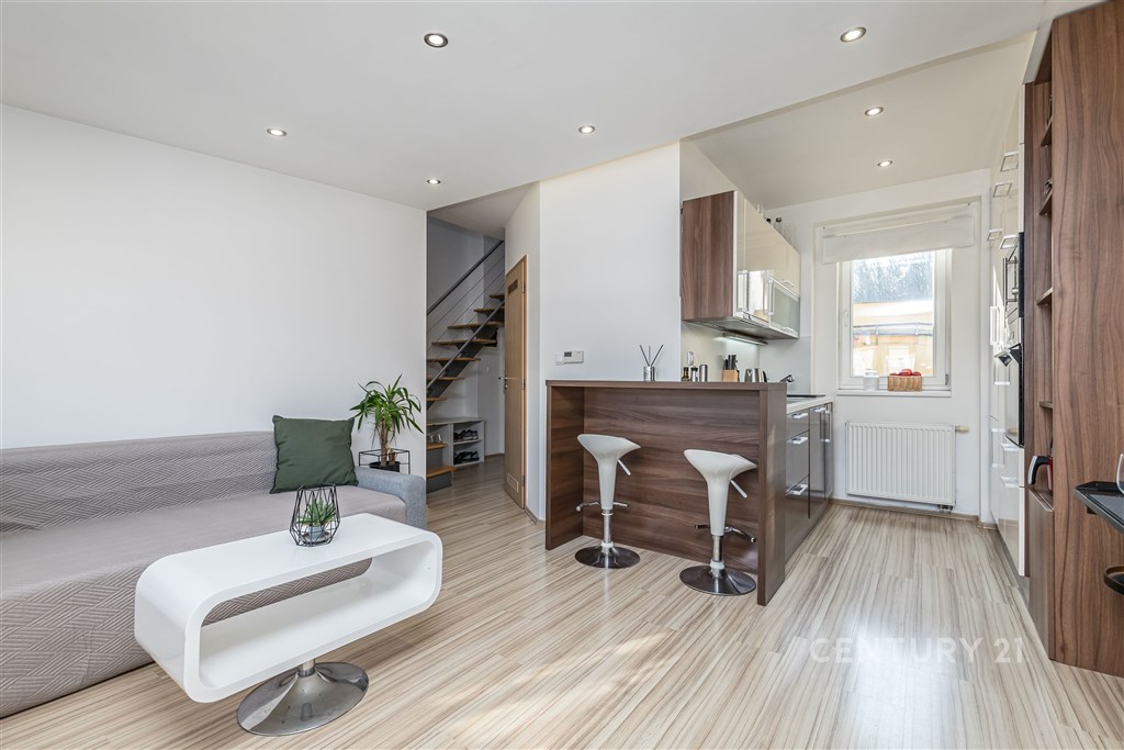 Hledáte domov, který vyčnívá z řady? Nabízíme k dlouhodobému pronájmu výjimečný, prosvětlený byt v prestižní lokalitě pražského Smíchova. Tento prostor v sobě spojuje eleganci historické čtvrti s moderním komfortem a naprostým soukromím. Unikátní prostor s dechberoucími výhledy na Prahu. Byt se nachází v 5. patře udržovaného domu s výtahem a jeho největší předností je otevřenost a klid. Světlu a poloze vysoko nad okolním ruchem si můžete vychutnat unikátní atmosféru a výhledy na Strahov, park Sacre Coeur, Mrázovku i věže historického centra. Dispozice a vybavení (53 m2) Společenská zóna (20,3 m2): Světlý obývací pokoj s kuchyňským koutem je spodní část bytu. Velká okna zajišťují dostatek přirozeného světla po celý den. Soukromá oáza (24,3 m2): Po elegantním schodišti vstoupíte do vyvýšené části bytu. Tato prostorná a tichá zóna je stvořena pro ničím nerušený odpočinek. Chodba a koupelna (8,3 m2): Vstupní chodba zahrnuje schodiště a útulnou koupelnu s pračkou. Vnitroblok s atmosférou: Nájemníci mají výhradní přístup do klidného vnitrobloku - ideální místo pro letní posezení nebo grilování s přáteli. Lokalita, kde máte vše na dosah Bydlení v Duškově ulici nabízí historii vily Bertramka i tep moderního Smíchova: Perfektní spojení: Tramvaj "Bertramka" je pouhých 150 m od vchodu. Na dopravní uzel Anděl dojdete za 10 minut pěšky. Městský život: Pár minut chůze vás dělí od OC Nový Smíchov, kin, vyhlášených kaváren a restaurací. Příroda v okolí: Relaxovat můžete v přilehlých parcích nebo na oblíbené smíchovské náplavce. Parkování: Možnost pohodlného parkování přímo před domem (modré a fialové zóny). Pro koho je tento byt? Pro jednotlivce nebo pár, kteří hledají dlouhodobé a stabilní zázemí. Pro ty, kteří chtějí bydlet v centru dění, ale po příchodu domů zavřít dveře a užívat si ticho a výhled, který se neomrzí.