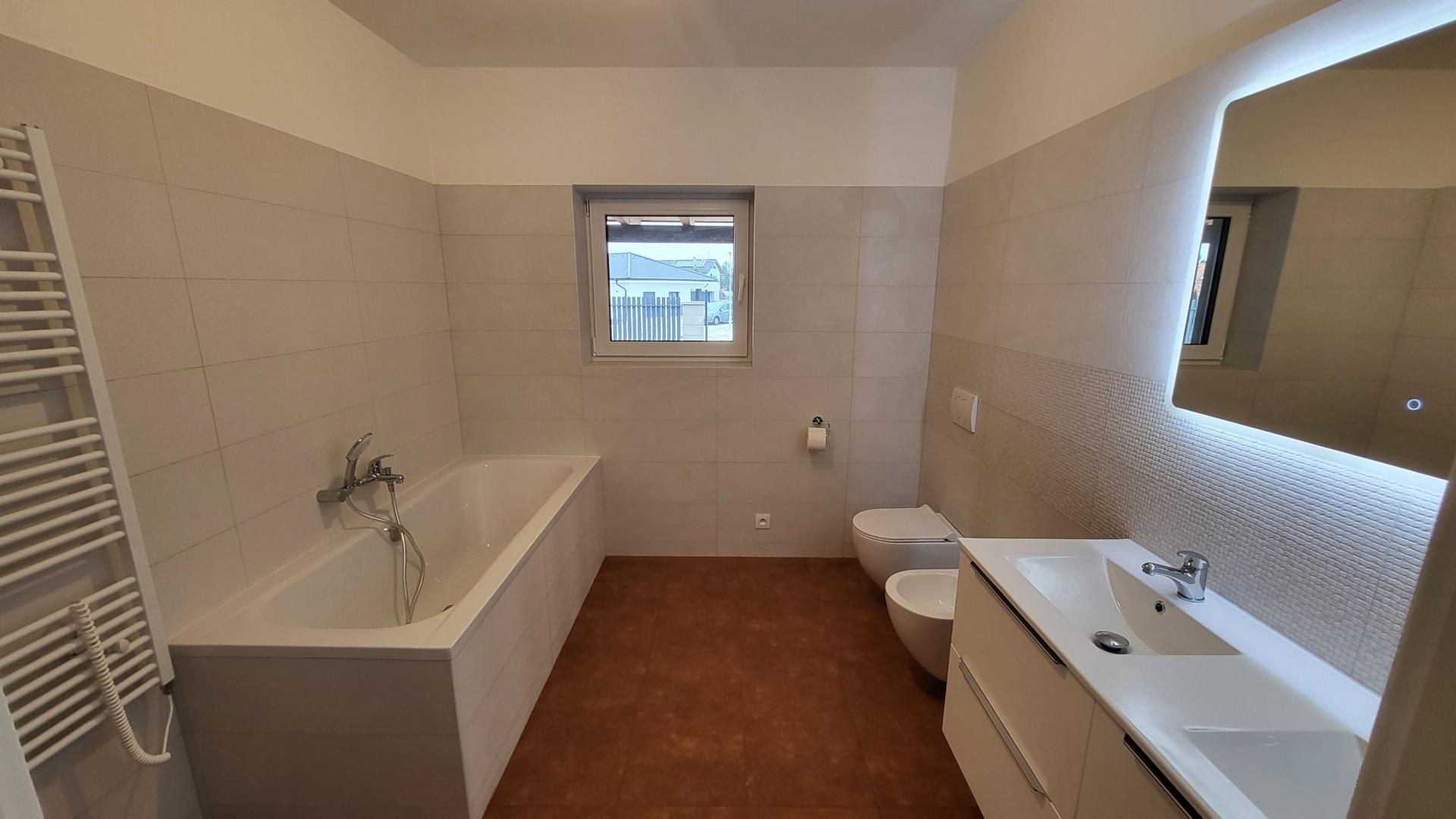 Prodej novostavby rodinného domu 4+kk s bazénem v klidné části obce Mukařov, ulice Heřmánková, okres Praha východ. Pozemek je v rovině, kompletně oplocený. Jedná se o nově vznikající rezidenční čtvrť 14 rodinných domů v neprůjezdné části Mukařova. Krajní dům na nejvyšším místě v rámci lokality, nad pozemkem je volný výhled do krajiny. Dům je řešený jako 4+kk, zastavěná plocha je 184 m, užitná 147 m (127 m vnitřní plocha domu + 20 m technická místnost), celková plocha pozemku včetně domu je 875 m. Dispozice domu: vstupní hala, velký obývací pokoj s kuchyní (se vstupem na terasu a zahradu k bazénu), komora, tři samostatné pokoje, 2 x koupelna (jedna koupelna s WC a sprchovým koutem, druhá koupelna s WC a vanou), technická místnost s technologií tepelného čerpadla a úložný prostor na půdě. U domu je samostatná technická místnost se vstupem ze zahrady a parkovací stání pod střechou. Na zahradě je zastřešený bazén o rozměrech 6 m x 3 m x 1,6 m, včetně veškerých bazénových technologií (tepelné čerpadlo). Dům je napojen na obecní vodovod, kanalizaci, elektřinu. Topení je tepelným čerpadlem s podlahovým vytápěním. Vjezdová vrata na dálkové ovládaní, branka. Mukařov je oblíbená lokalita dobrá dostupnost do Říčan a do Prahy, v okolí lesy a hezká příroda, v místě je úplná občanská vybavenost, široké nákupní možnosti. V domě nikdo nebydlel, fotografie jsou skutečného stavu. Energetická třída je B.