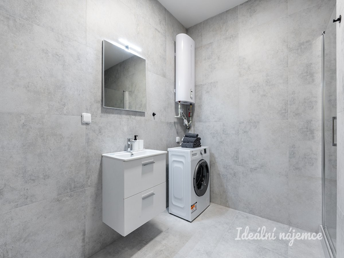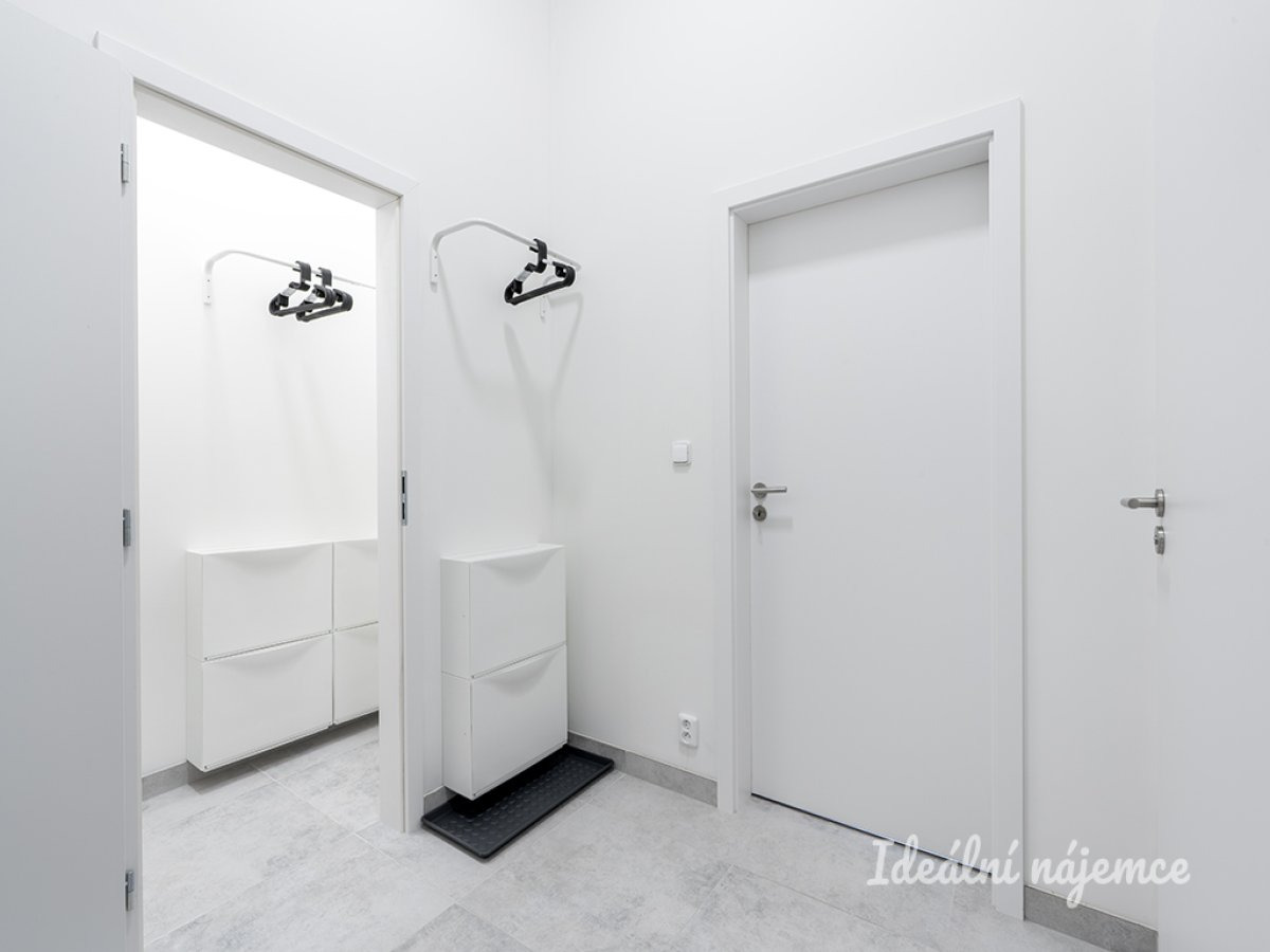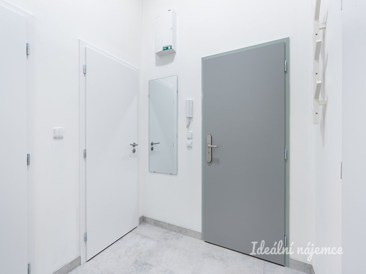 K dlouhodobému podnájmu nabízíme krásný nový, kompletně vybavený byt o dispozici 2+kk v klidné lokalitě Kyje vybavený inteligentním přístupem do domu i bytu. Byt o celkové výměře 58m2 se nachází ve 1. podlaží cihlového domu s podlahovým vytápěním. Byt má komoru a pracovnu. Byt se nabízí plně vybavený. Kuchyně disponuje lednicí, myčkou, elektrickou troubou, varnou deskou, mikrovlnnou troubou, rychlovarnou konvicí a digestoří. Obývací část je zařízena rozkládací pohovkou, tv stěnou s televizí, jídelním stolem a židlemi. V ložnici je postel, matrace včetně lůžkovin a ložního prádla, skříně, stůl a židle. V koupelně je sprchový kout, umyvadlo, toaleta, pračka, i ručníky. Základní internetové připojení je v ceně služeb. Přímo v domě se nachází fítness centrum, kadeřnictví a nehtové studio. V okolí domu najdete restaurace, supermarket, základní a mateřskou školu, lékárnu atd. Výborná dopravní dostupnost: - Čtyři minuty chůze od domu je zastávka metra Rajská Zahrada a vlaková stanice Praha Rajská Zahrada vlakem (!!za 13 minut v centru Prahy!!) - Autobusové zastávky jsou hned vedle domu. Majitel preferuje zájemce bez domácích mazlíčků. Byt je volný k nastěhování od 1.3.