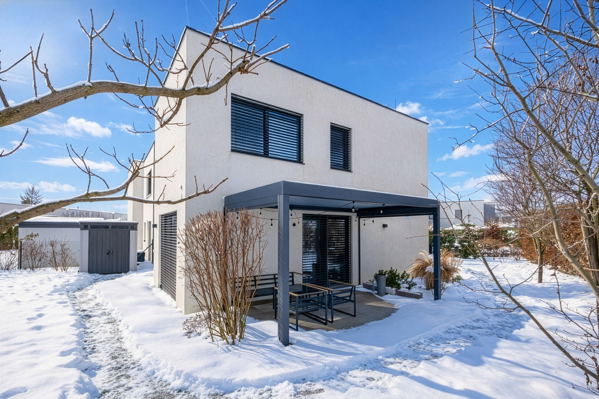 Dovolujeme si vám exkluzivně nabídnout pronájmu výjimečný rodinný dům, který potěší každého, kdo hledá moderní architekturu, promyšlené detaily a skutečný komfort rodinného bydlení. Dům se nachází v nově vzniklé rezidenční čtvrti v Praze 8 - Březiněvsi. Tento dvoupodlažní dům o dispozici 5+kk byl kolaudován v roce 2019. Celková užitná plocha 157,63 m2, terasa 10 m2 a vzrostlá zahrada vytvářejí ideální prostor pro rodinný život. Dispozice domu: 1.NP vás přivítá elegantním zádveřím (6,92 m2) a halou (5,88 m2). Srdcem domu je velkorysý obývací pokoj s kuchyní a jídelnou (36,52 m2). Dále zde najdete koupelnu se sprchovým koutem a toaletou, technickou místnost, sklad a garáž pro jeden automobil (18,48 m2). Samozřejmostí je podlahové vytápění v celém 1. NP. 2. NP nabízí soukromí a klid: ložnici s vlastní koupelnou, sprchovým koutem a šatnou, dva dětské pokoje / pracovny, další koupelnu s vanou i sprchovým koutem, samostatnou pracovnu a centrální chodbu. Interiér domu je kompletně řešen na míru truhlářem - od vestavěných skříní, přes elegantní úložné prostory v každém koutě domu až po luxusní kuchyňskou linku s moderními technologiemi a vinotékou, která potěší i náročné milovníky vaření. Vše je sjednoceno do jemných zemitých tónů, které působí klidně, harmonicky a nadčasově. Z obývacího pokoje je přímý vstup na terasu s bioklimatickou pergolou, vybavenou screenovými roletami na dálkové ovládání. Technická místnost je navržena s důrazem na praktičnost. V celém domě jsou venkovní žaluzie na dálkové ovládání a v oknech sítě proti hmyzu, vytápění zajišťuje plynový kotel. Dům má centrální zabezpečení napojené na pco. Po celém domě je dřevěná podlaha ve vysokém standardu. V zahradě je pak zahradní domek, který slouží jako další úložný prostor. Dům je připraven pro nové obyvatele a je možné se tak ihned nastěhovat. Hledáme nájemníky, kteří mají zájem o dlouhodobé bydlení a budou zde spokojeně žít. Majitelé požadují nájemné ve výši: 59.000,- Kč + zálohy na vodu. Elektřina plyn se převádí na nájemníka. Kauci ve výši: 100.000,- Kč. Provize pro rk činí jeden měsíční nájem bez energií. Březiněves patří k vyhledávaným částem Prahy 8 - nabízí klidné rezidenční bydlení v zeleni, přátelskou komunitu a zároveň výbornou dostupnost do centra Prahy. V okolí najdete školky, školy, obchody, restaurace, sportovní vyžití i krásné procházky do přírody. Je to místo, kde se žije pomaleji, bezpečněji a s pocitem domova - ideální pro rodinu, která chce spojit městský komfort s atmosférou menší čtvrti. Tento dům není jen o metrech čtverečních. Je o pocitu, že se večer vracíte tam, kde je klid, teplo a harmonie. Pokud hledáte výjimečný pronájem bez kompromisů, tohle je místo, které stojí za osobní prohlídku.