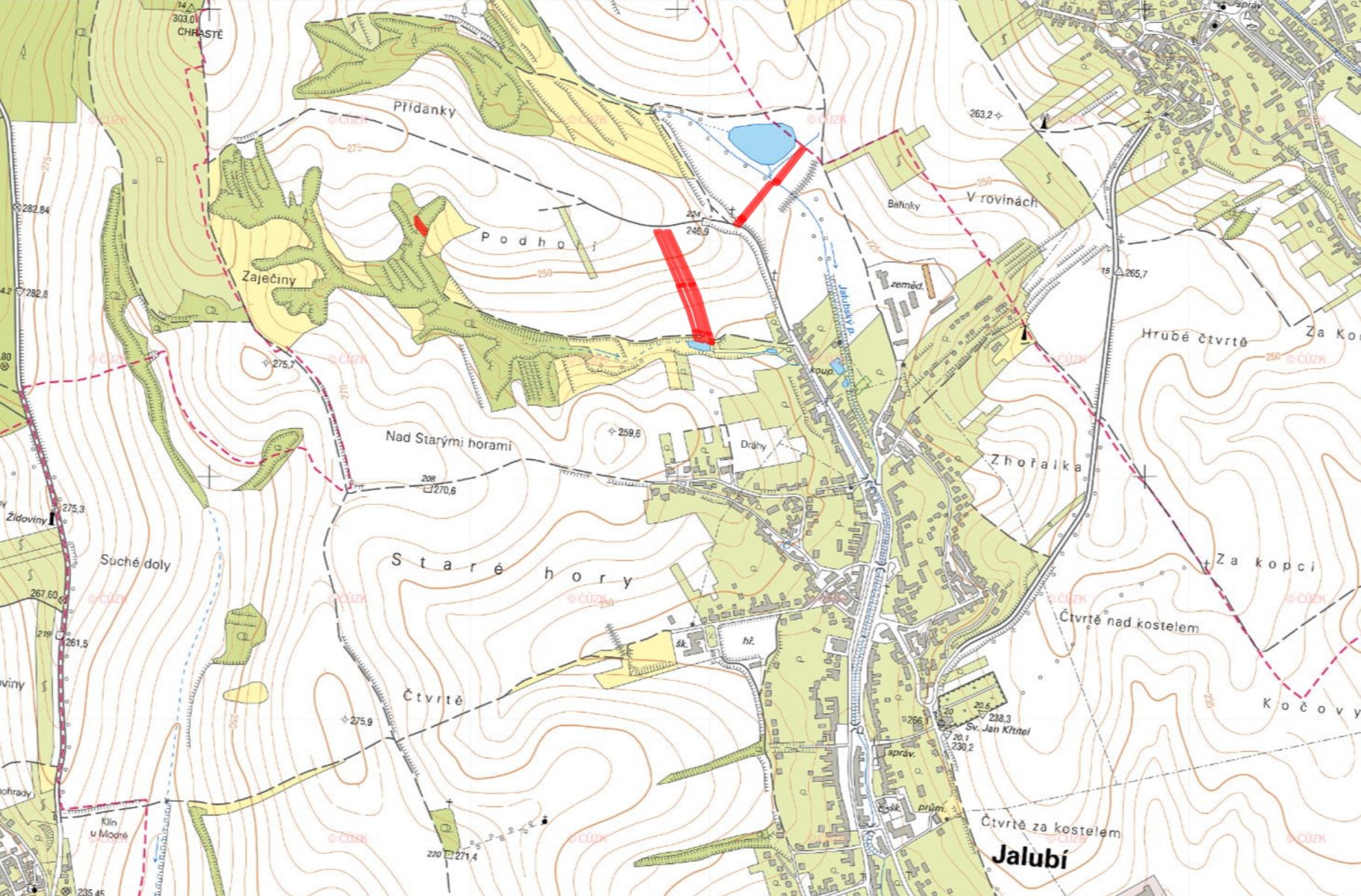 Nabízím k prodeji soubor zemědělských pozemků v katastrálním území Jalubí, okres Uherské Hradiště. Všechny parcely jsou zapsány na listu vlastnictví č. 345 a nacházejí se ve výlučném vlastnictví prodávajícího. Jedná se o následující parcely: parc. č. 286/143, 287/262, 615/145, 1896/123, 1896/124, 1896/129, 1896/130 orná půda parc. č. 1896/53, 1896/56 vinice parc. č. 725, 1747/68, 5454/15, 5520/6 ostatní plocha Celková výměra všech pozemků činí 7 416 m, přičemž všechny jsou předmětem prodeje. Z toho: 5 771 m tvoří orná půda 2 656 m tvoří vinice 989 m připadá na ostatní plochy Průměrná hodnota pozemků dle BPEJ činí 11,06 Kč/m. Pozemky se nacházejí v oblasti s teplým podnebím, které je dlouhodobě příznivé pro zemědělskou výrobu i pěstování plodin náročnějších na klimatické podmínky. Kvalita půdy je podpořena bonitou pozemků, což se odráží i v jejich hospodářském potenciálu a dlouhodobé stabilitě hodnoty. Další praktickou výhodou je zajištěný přístup k zemědělsky užívaným pozemkům. Pro více informací o tomto pozemku mne kontaktujte telefonicky nebo e-mailem. Pozemky nabízím k exkluzivnímu prodeji v zastoupení vlastníka. Cena je uvedena včetně provize. Majitel si vyhrazuje právo vybrat kupujícího na základě nabídky.