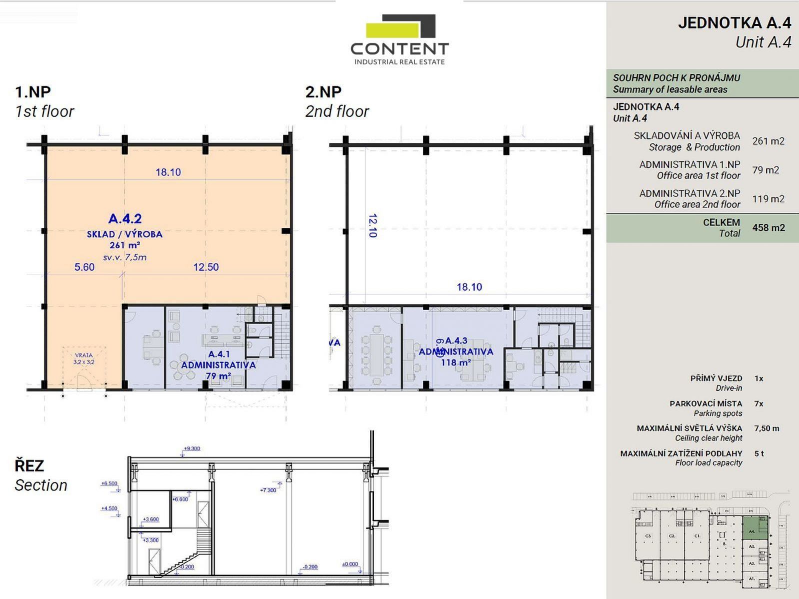 Pronájem skladu, výrobních prostor nebo prodejních prostor 458 m (jednotka A.4). Praha 10 - Malešice. V zastoupení majitele a bez provize nabízíme nebytové prostory v menším uzavřeném areálu, který prochází kompletní rekonstrukcí a dostavbou. Tento prvotřídní projekt nabízí různé flexibilní typy prostor (SBU) dle Vašich potřeb - sklady, výrobní prostory, showroom, kanceláře, vývoj, laboratoře, atd., umístěné v přízemí industriální budovy, kancelářské prostory jsou ve dvou podlažích. - plánované dokončení do poloviny roku 2027 - 261 m industriálních prostor se světlou výškou 7,5 m - kancelářské prostory 79 m v přízemí + 118 m v patře propojených schodištěm - zásobovací vjezd v úrovni vozovky - nosnost podlah 5t/m - osobní vstup - parkování před budovou - výborná dostupnost MHD - celková pronajímatelná plocha v jednom celku až 1376 m (celá budova A) - úpravy i dělení prostor dle potřeby Cena nájmu je individuální, dle dalších podmínek smlouvy + služby. Fotografie jsou ilustrační. Pro více informací o tomto projektu nás neváhejte kontaktovat, rádi zodpovíme Vaše dotazy.