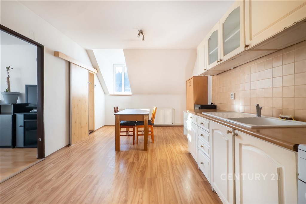 Podkrovní byty mají své kouzlo a své příznivce. A pokud mezi ně patříte, zaujme Vás tento byt v Proseči nad Nisou. Bytový cihlový dům stojí na pozemku se společnou velkou (1327 m2) zahradou, která je využíváná majiteli bytových jednotek. Někteří zahradu využívají k relaxaci v létě, jiní pro děti, aby si měly kde bezpečně hrát a někteří si zde zahradničí. Komunita sousedů je zde přátelská, bezkonfliktní. Samotný byt se nachází ve třetím nadzemním podlaží v podkrovních prostorách. Tři pokoje, prostorná kuchyň, předsíň a koupelna s toaletou disponují celkem 73,5 m2 podlahové plochy. Orientace oken je jihovýchodním směrem. V rámci úprav a oprav byl pořízen bojler na ohřev teplé vody a plynový kotel na vytápění sloužící výhradně bytové jednotce. Úspora v rámci dodávaných zdrojů energií je i v napojení na studnu náležící k domu. Do užívání bytové jednotky nyní spadá i půdní kóje, uzamykatelná spíž na chodbě a uzamykatelný prostor v garáži náležící k bytovému domu. Proseč nad Nisou se rozléhá mezi Jabloncem nad Nisou a Vratislavicemi nad Nisou. Díky této poloze je napojena na MHD mezi Libercem a Jabloncem. Lze tedy využít jak autobusovou, tak i tramvajovou dopravu. A díky sousedícím městům máte k dispozici i veškeré potřebné služby a obchody. Jedná se o byt v osobním vlastnictví. Koupi domu je možné realizovat hypotečním úvěrem na danou nemovitost a rád s Vámi vyřeším Vaše možnosti a ideální řešení. Pro více informací a možný termín prohlídky mě kontaktujte. S pozdravem, Vladimír Řehák