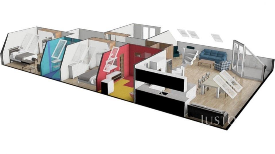 VELKORYSÝ MEZONETOVÝ BYT 5+KK SE DVĚMA KOUPELNAMI A DVĚMA BALKONY V PÍSKU UL. BUDĚJOVICKÁ Nabízíme Vám ke koupi mimořádně prostorný a elegantní mezonetový byt o dispozici 5+kk a celkové ploše 193,3 m, situovaný v samotném centru Písku, přesto v naprosto klidné části domu s výhledem do vnitrobloku. Tento byt představuje ideální kombinaci městského bydlení a komfortu rodinného domu soukromí, velkorysé prostory, promyšlená dispozice a dostatek ložnic i úložných prostor uspokojí i náročnou rodinu. Dispozice a atmosféra: Dominantou bytu je reprezentativní obývací pokoj s jídelní částí a kuchyňským koutem, který tvoří přirozené srdce domova. Z obývacího pokoje vede elegantní schodiště do mezonetu, kde se nachází samostatná ložnice se šatnou ideální jako rodičovská zóna, pracovna nebo pokoj pro hosty. V přízemí se nachází tři samostatné ložnice, každá s vlastním vstupem, což zajišťuje maximální soukromí. Jedna z ložnic je přímo propojena s prostornou koupelnou. Další velkou výhodou jsou dvě koupelny a dva balkony, které ještě více podtrhují komfort tohoto bytu. Byt působí velmi reprezentativně, vzdušně a harmonicky je skvělou volbou pro ty, kteří hledají alternativu k rodinnému domu v centru města. Lokalita: Ulice Budějovická nabízí výjimečnou kombinaci centra města a absolutního klidu. V bezprostředním okolí naleznete: Gymnázium a střední průmyslovou školu Nemocnici Písek Základní a mateřské školy Kompletní občanskou vybavenost v docházkové vzdálenosti Parkování: K bytu je možné dokoupit garážové parkovací stání, což je v této lokalitě velmi cenným benefitem. Přehled místností a výměr: Předsíň: 6,95 m Chodba: 10 m Pokoj 1: 17,9 m Koupelna + WC: 5,15 m Pokoj 2: 12,64 m Koupelna + WC (velká): 11,25 m Komora: 1,81 m Obývací pokoj: 50,91 m Balkon: 7,09 m Kuchyňský kout + jídelna: 22,2 m Pokoj 3: 17,81 m Balkon: 4,02 m Pokoj v podkroví: 20,17 m Šatna v podkroví: 5,4 m Celková plocha bytu: 182,19 m Celkem včetně balkonů: 193,3 m